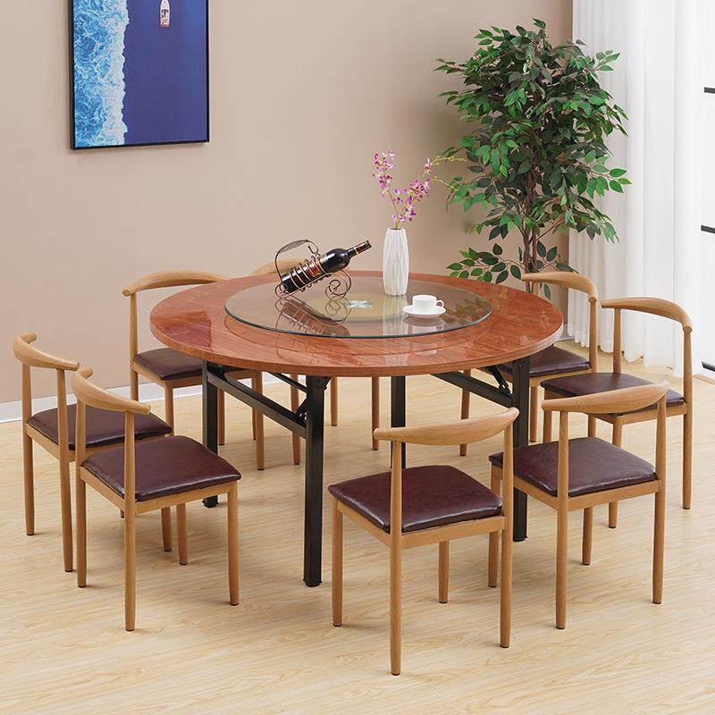 📚 加厚大圆桌面圆形桌子可折叠家用带转盘酒店饭店餐桌实木圆桌面板