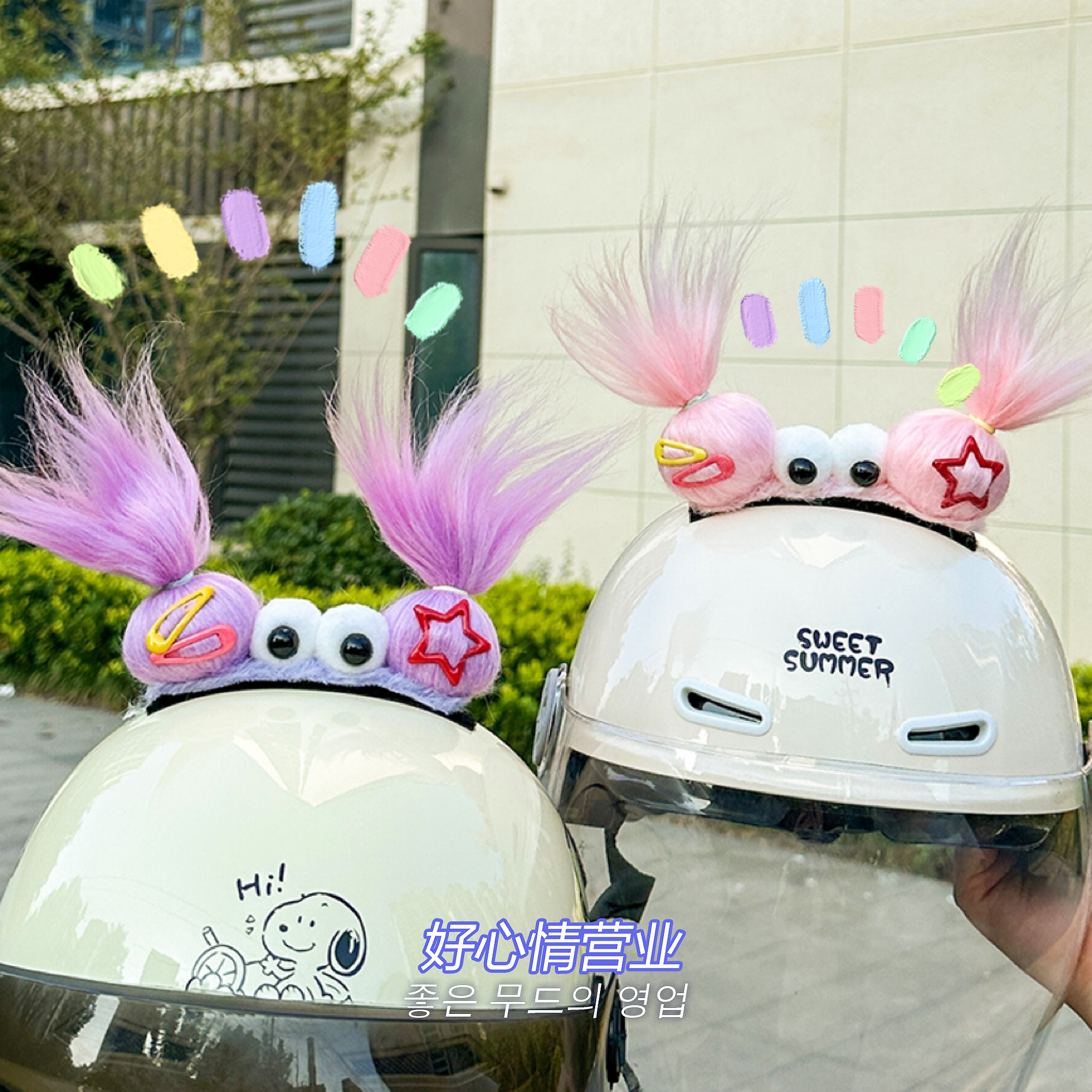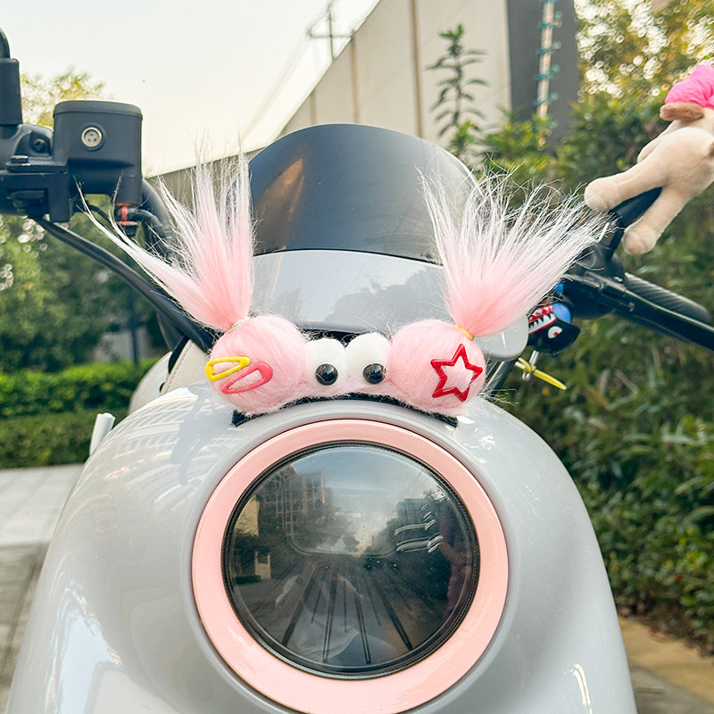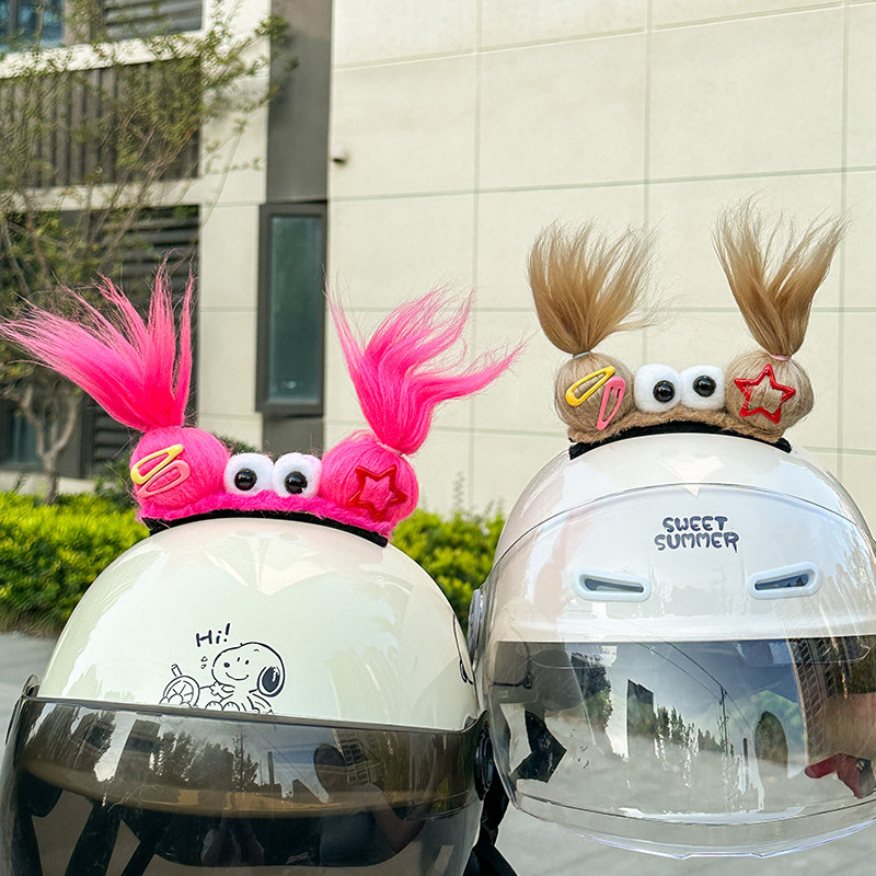 📚 头盔装饰辫子个性毛绒外卖摩托车儿童滑雪头盔小配件电动车装饰品