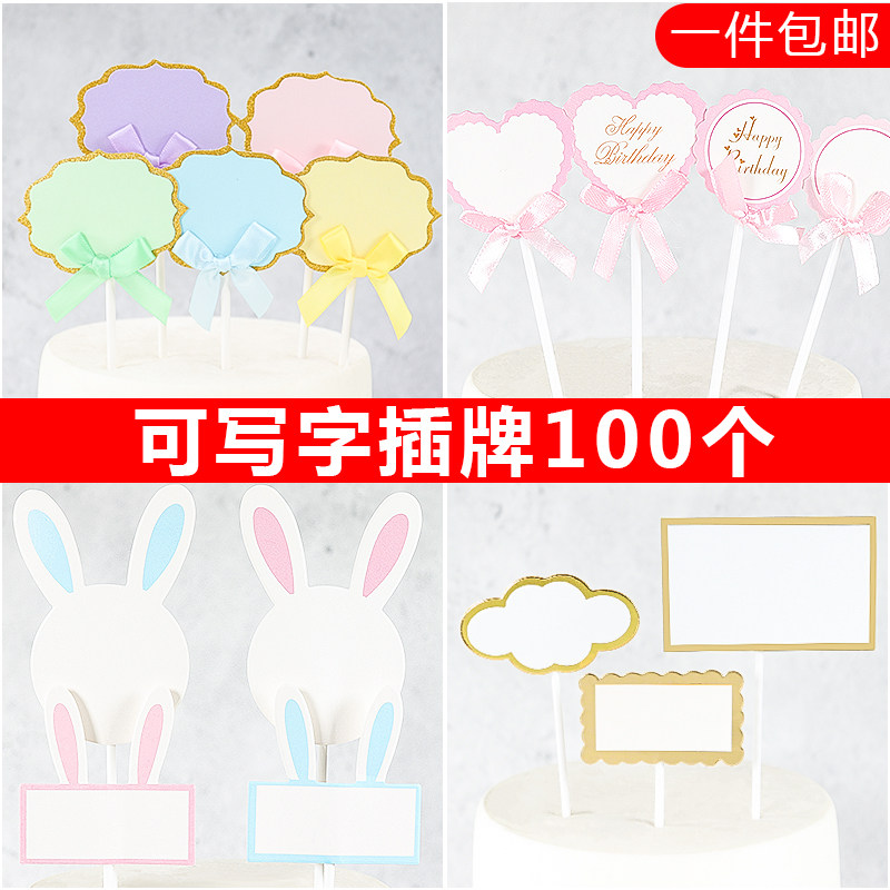 📚 包邮100只装可写字蛋糕装饰插牌生日空白手写祝福语卡片烘焙插旗