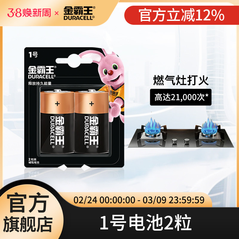 📚 金霸王1号电池一号碱性干电池燃气灶煤气灶液化气热水器天然气手电筒D形R20专用1.5V持久能量2粒装官方旗舰店