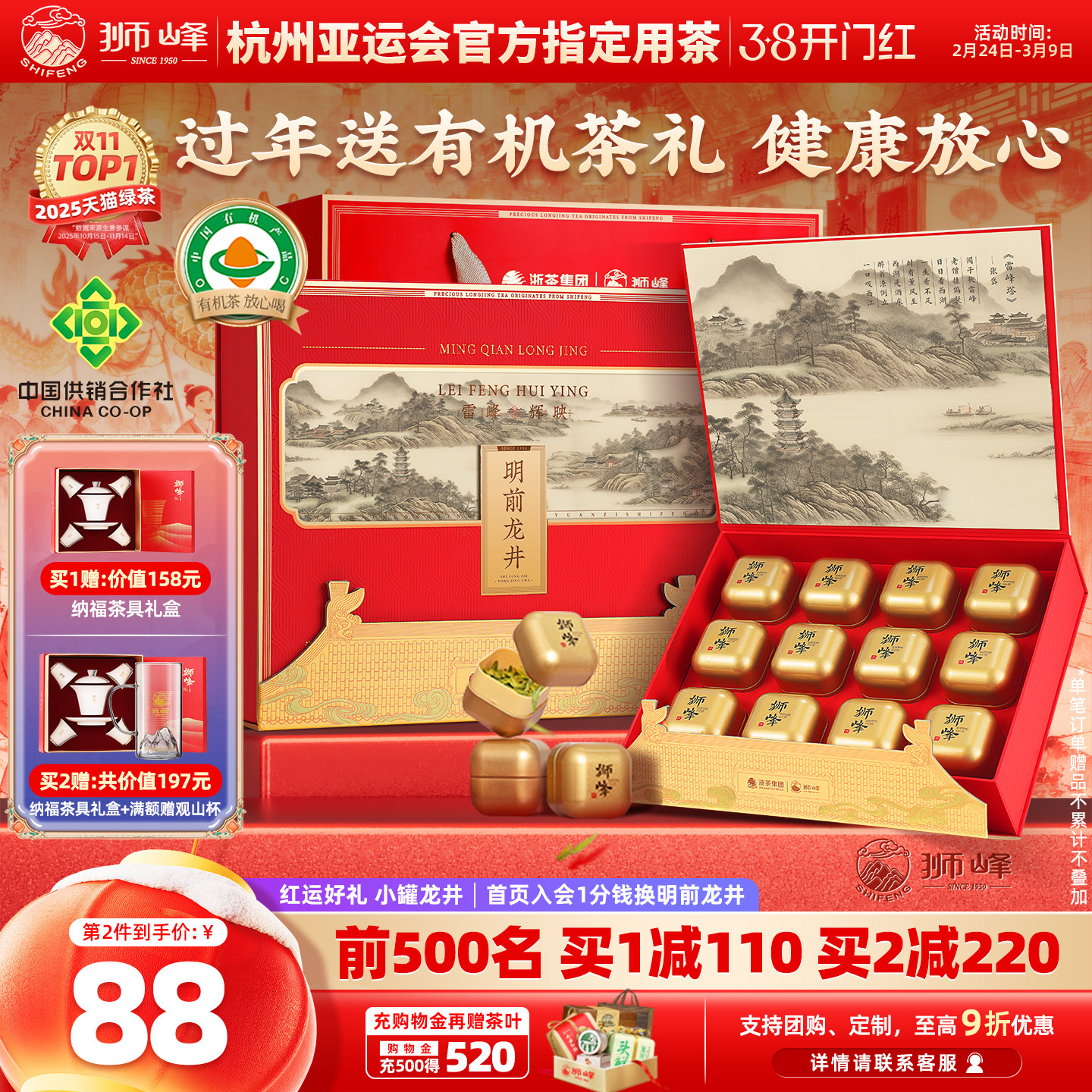 📚 2025新茶狮峰牌有机明前龙井茶叶礼盒装春绿茶小罐送礼长辈丈人