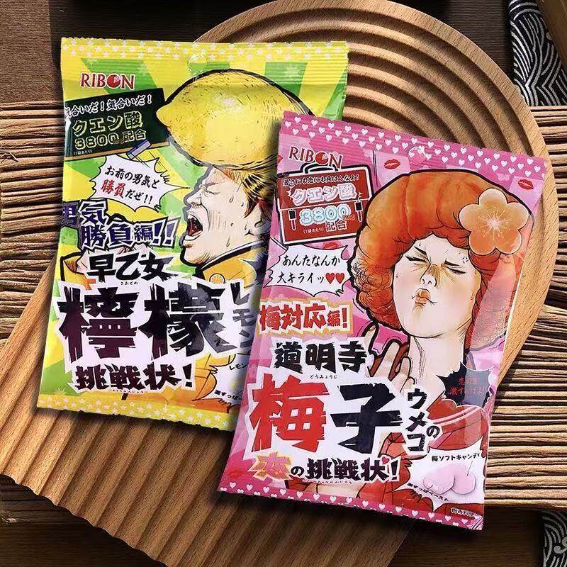 📚 日本理本ribon道明寺超酸柠檬味糖梅子味夹心软糖爆酸早乙女糖果