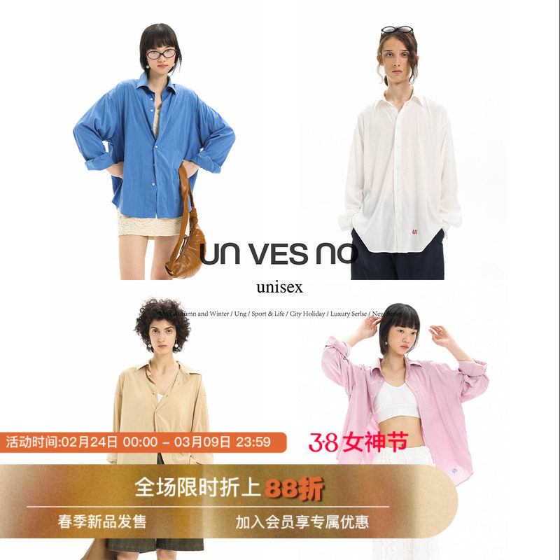 📚 明星同款Unvesno(UN)自然褶皱洗水莱赛尔慵懒宽松休闲长袖衬衫秋