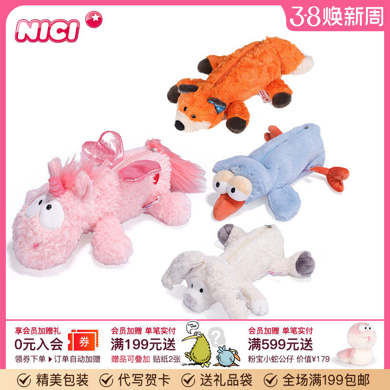 📚 德国NICI爱心独角兽笔袋狐狸化妆包知更鸟公仔玩偶雪兔毛绒收纳包