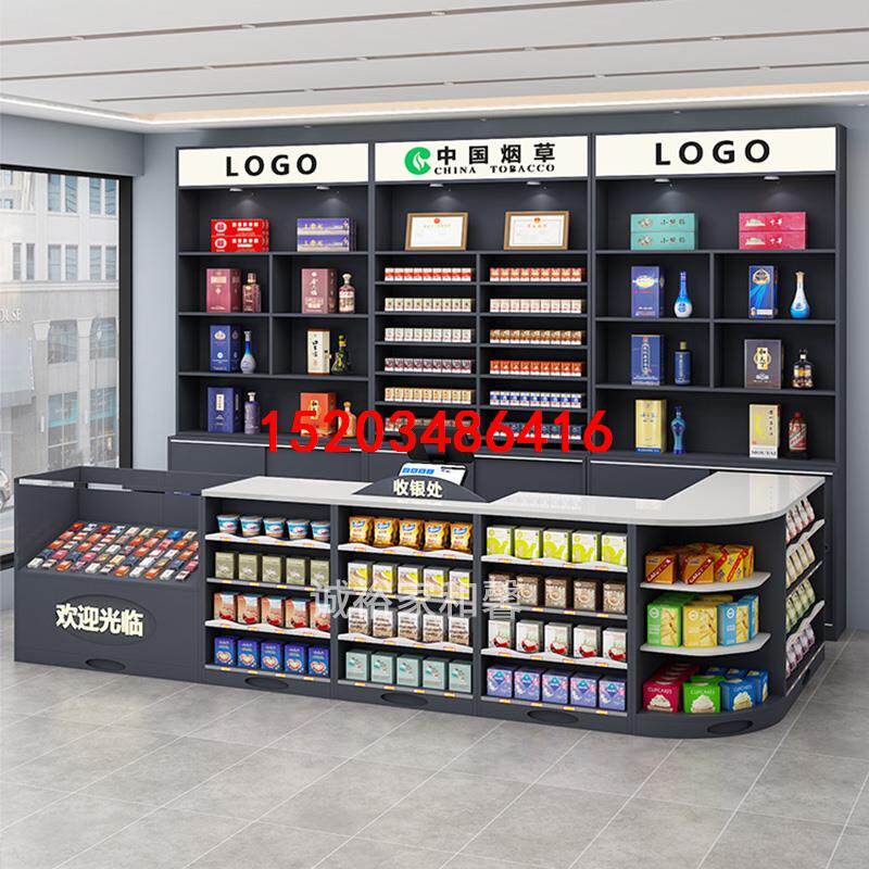 📚 超市收银台便利店烟酒柜一体组合转角背柜吧台商场商用定制展示柜