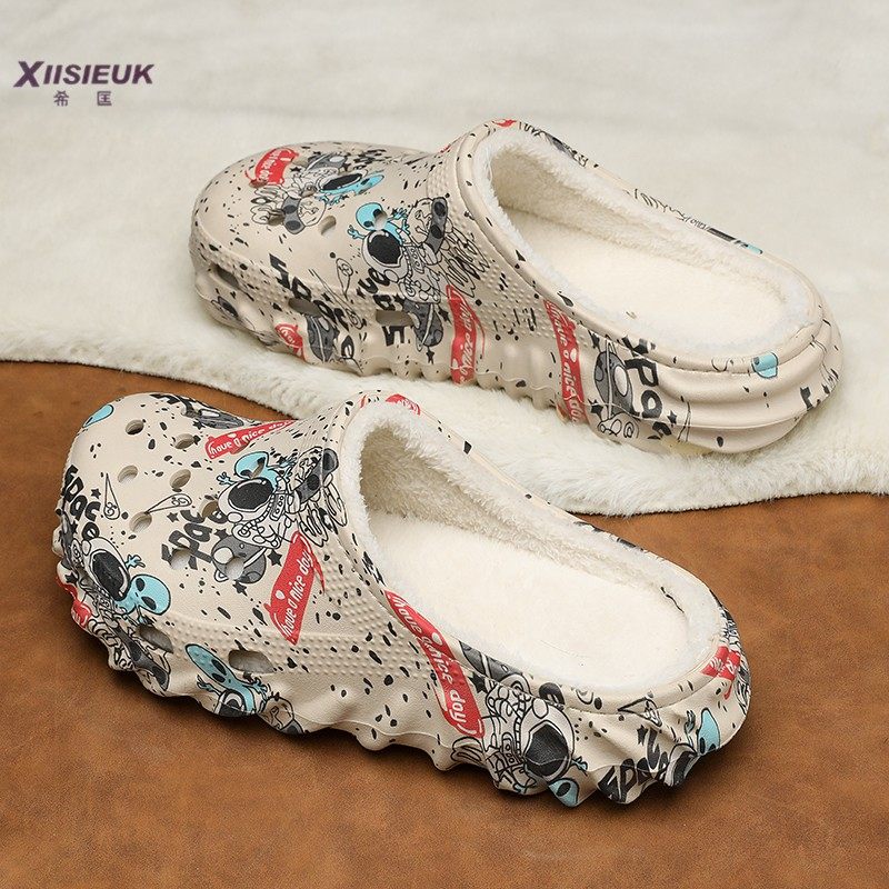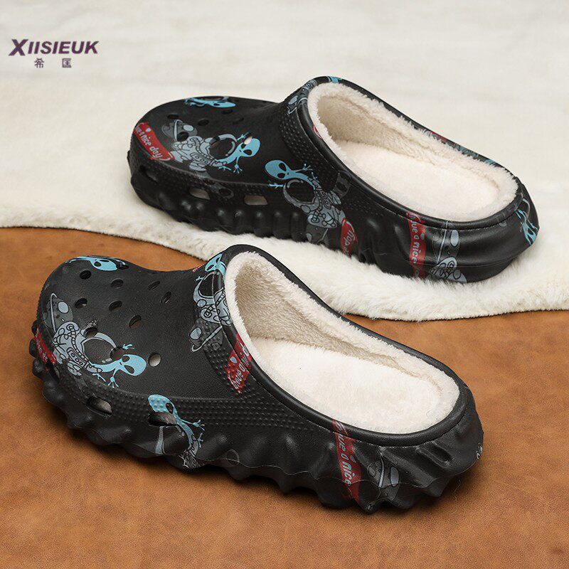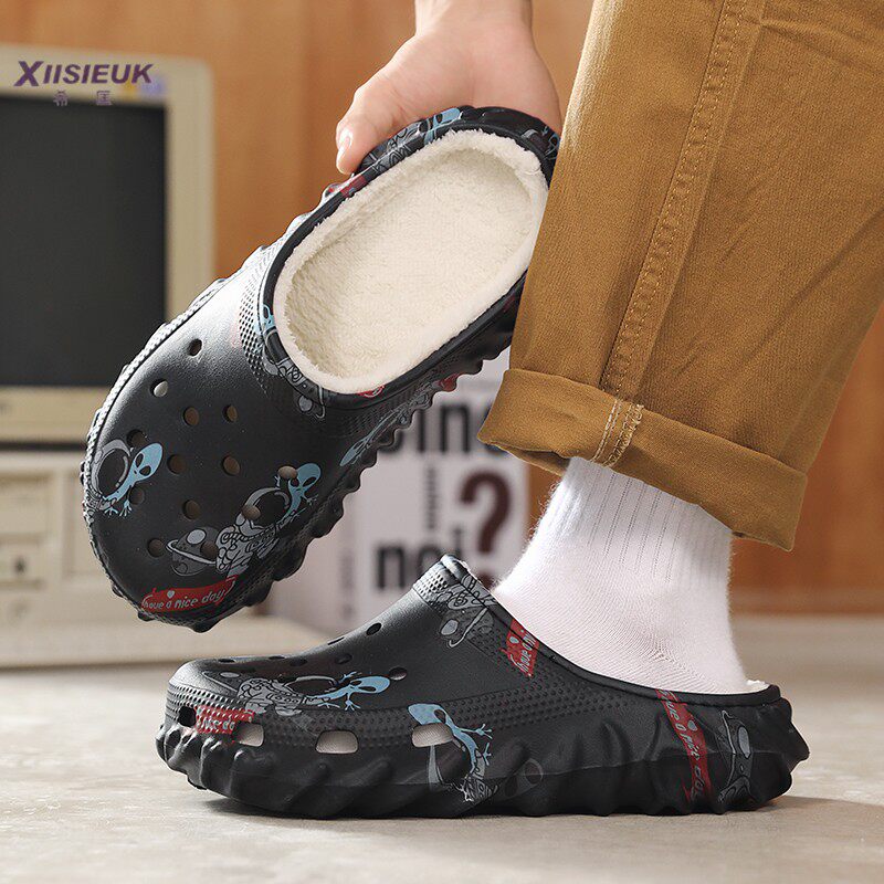 📚 加绒手术室拖鞋男冬季大码棉鞋外穿医护士防滑无跟洞洞包头棉拖鞋