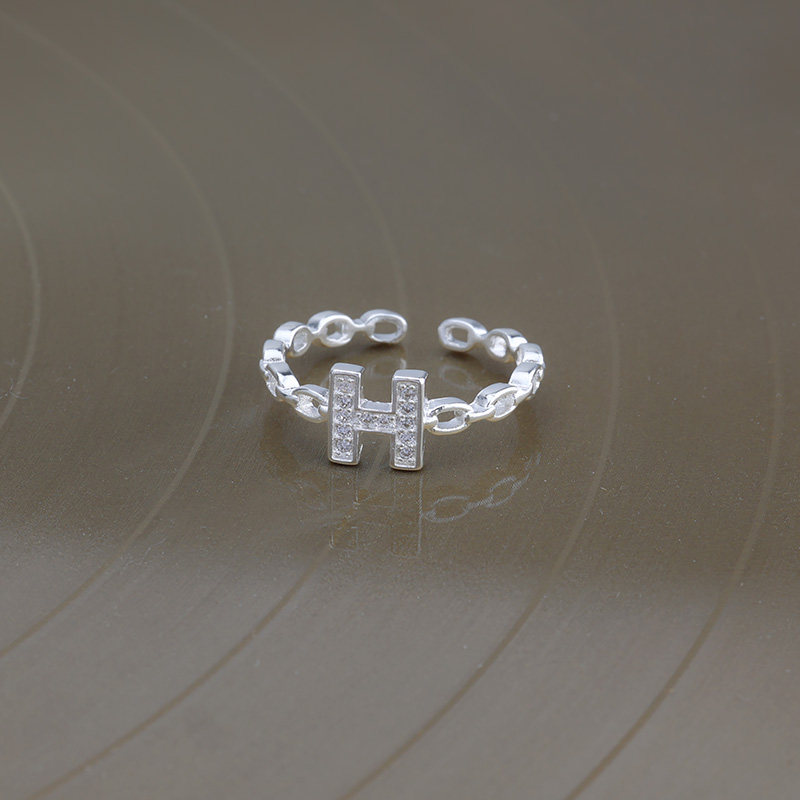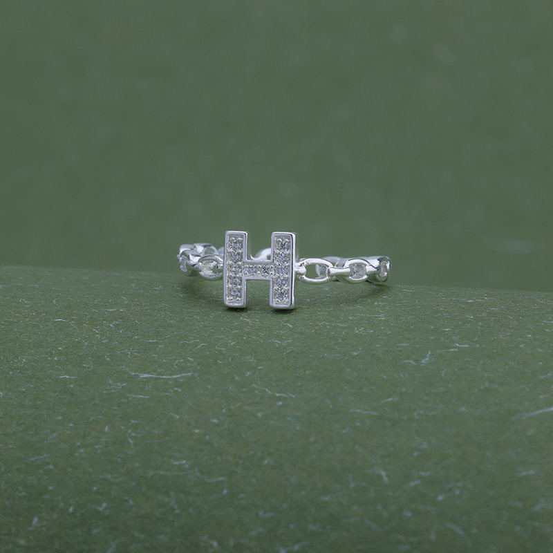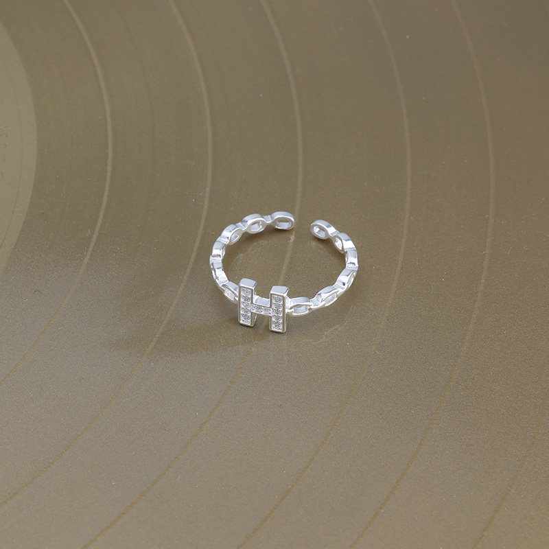 📚 H字母链条戒指女小众设计气质高级感几何食指开口轻奢可调戒指环