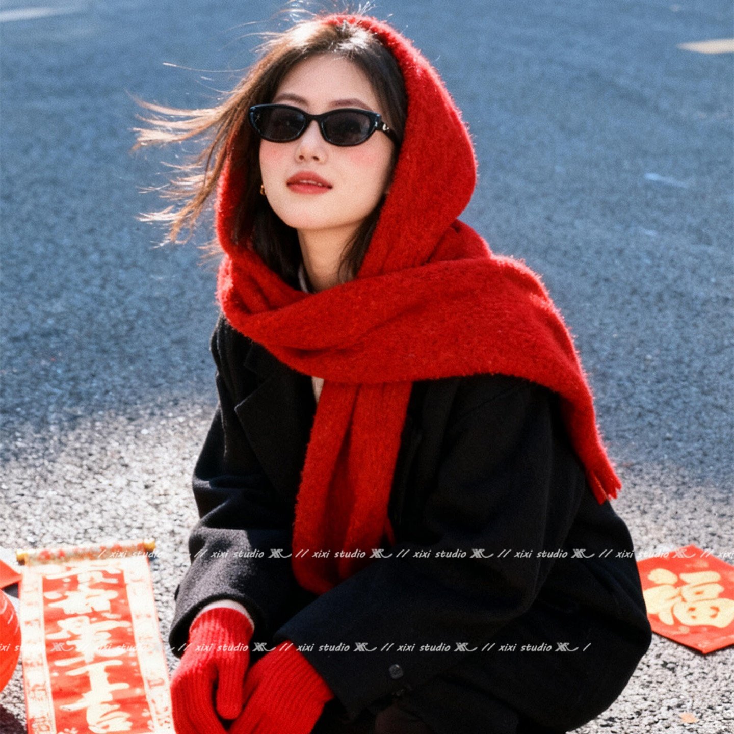 #新品首发 #冬日新品 #红色围巾 #羊毛针织 #保暖围脖 #大衣搭配 #新年洋气 #显白披肩