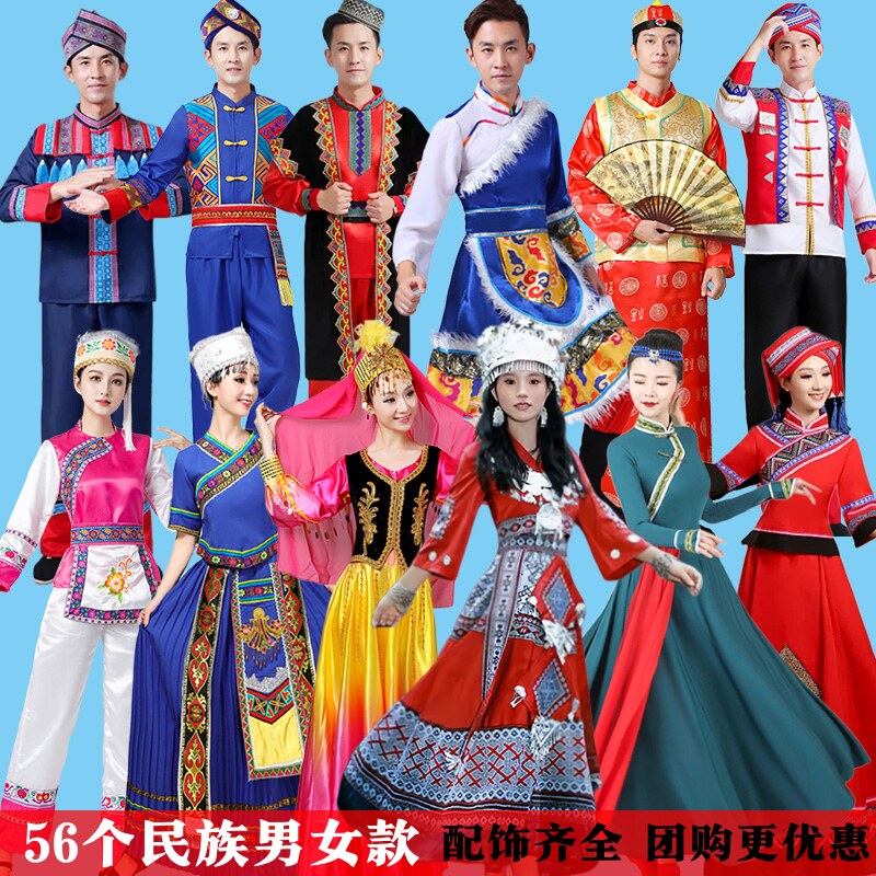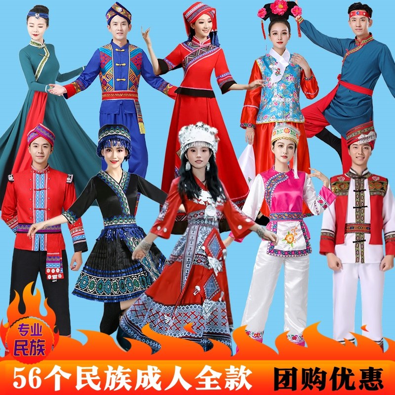 📚 56个少数民族服装男女成人苗族蒙古族彝黎族壮族藏族演出舞蹈服饰