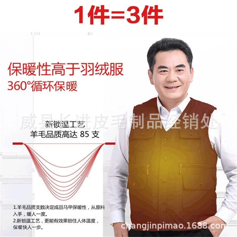 📚 纯羊毛马甲皮毛一体羊剪绒真羊皮男中老年加绒加厚棉坎肩背心