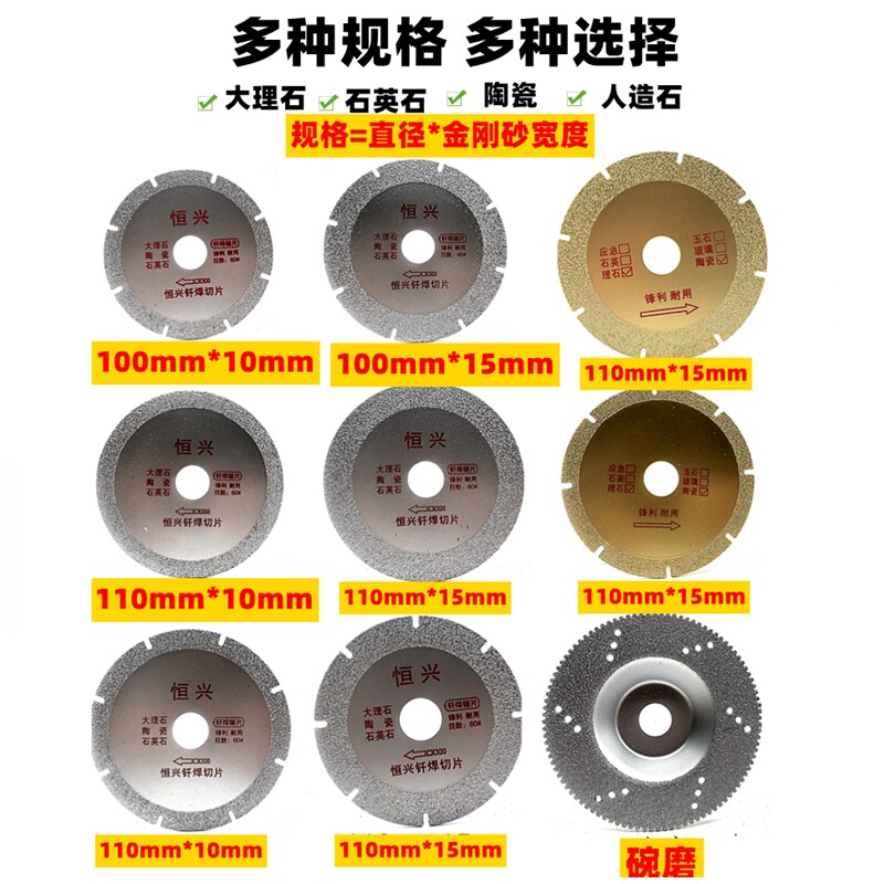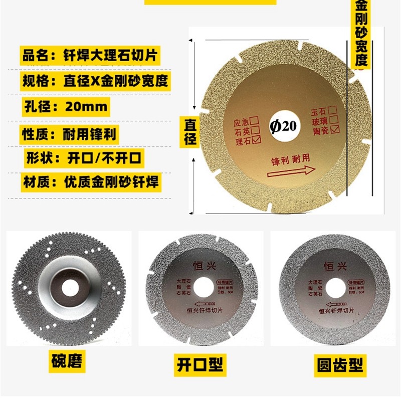 📚 大理石切割片石英石钎焊锯片碗磨片石材干切片瓷砖角磨机切割刀片