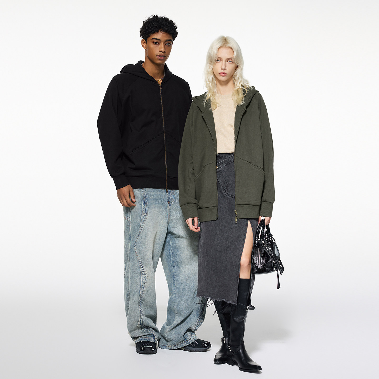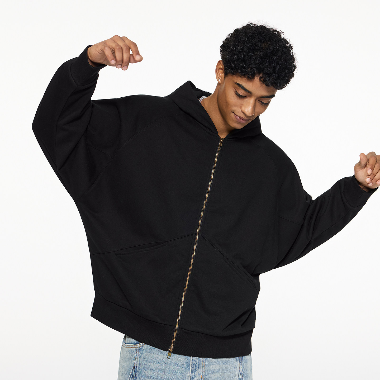 📚 oversize美式穿搭连帽卫衣重磅结构设计落肩蝙蝠袖双头拉链开衫