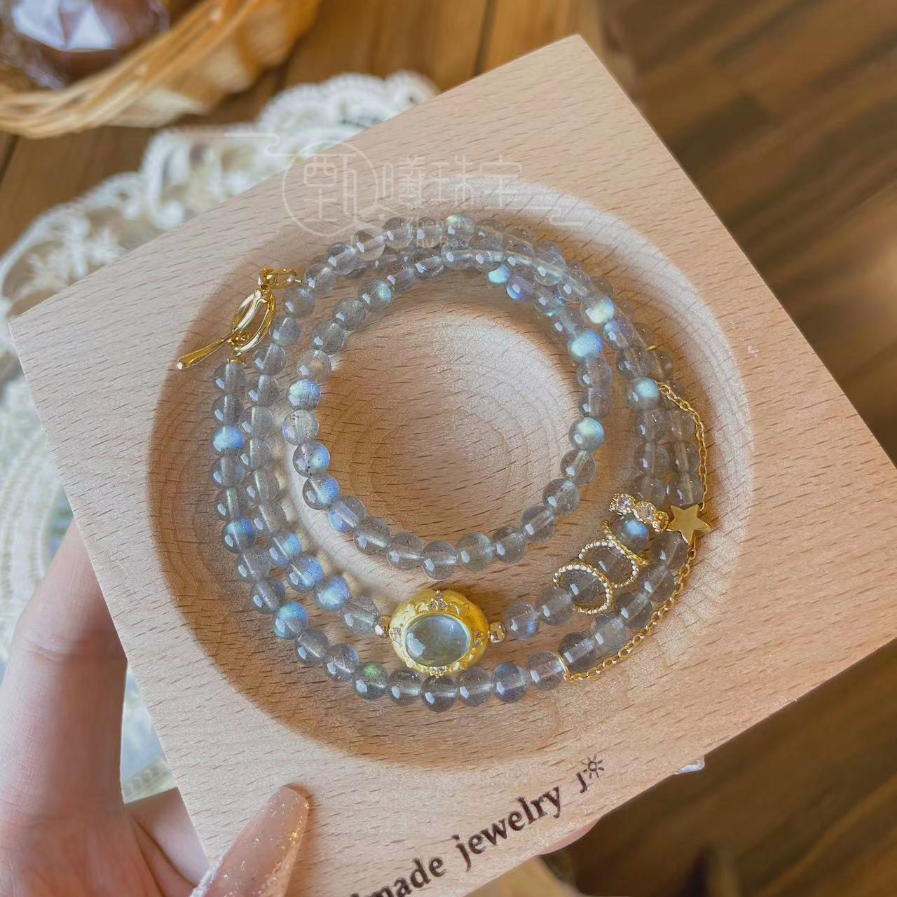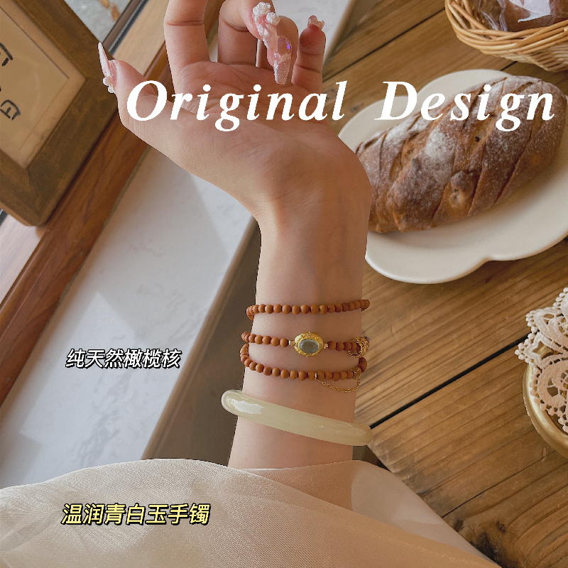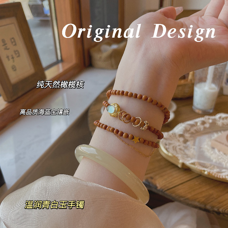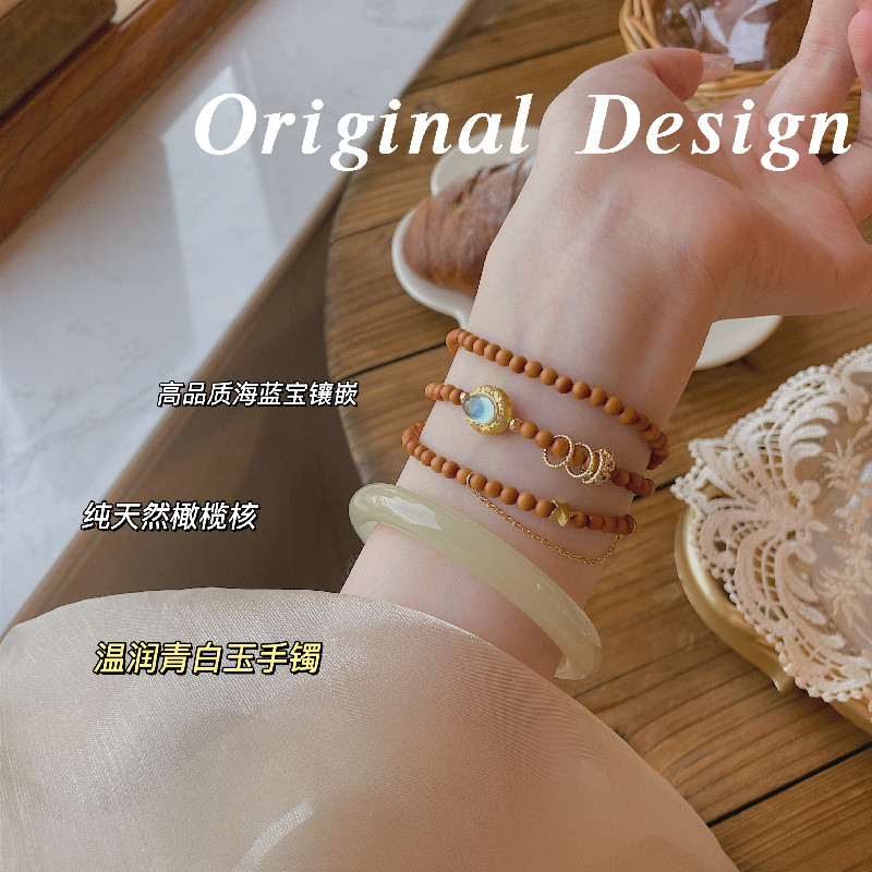 📚 原创正品天然橄榄核三圈长串月光石光珠文玩手链新中式饰品古国风