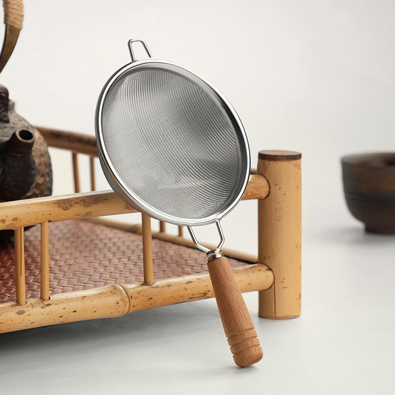📚 双层不锈钢茶滤日式创意茶漏隔茶叶泡茶滤公道杯胡桃木柄过滤器网