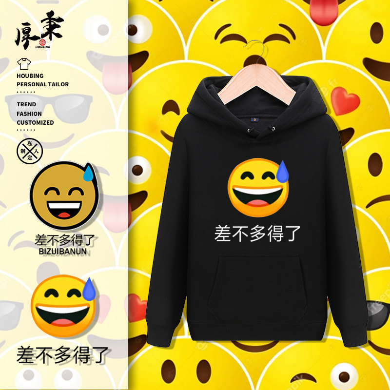 📚 流汗黄豆表情包差不多得了搞笑二次元男女生休闲情侣连帽加绒卫衣
