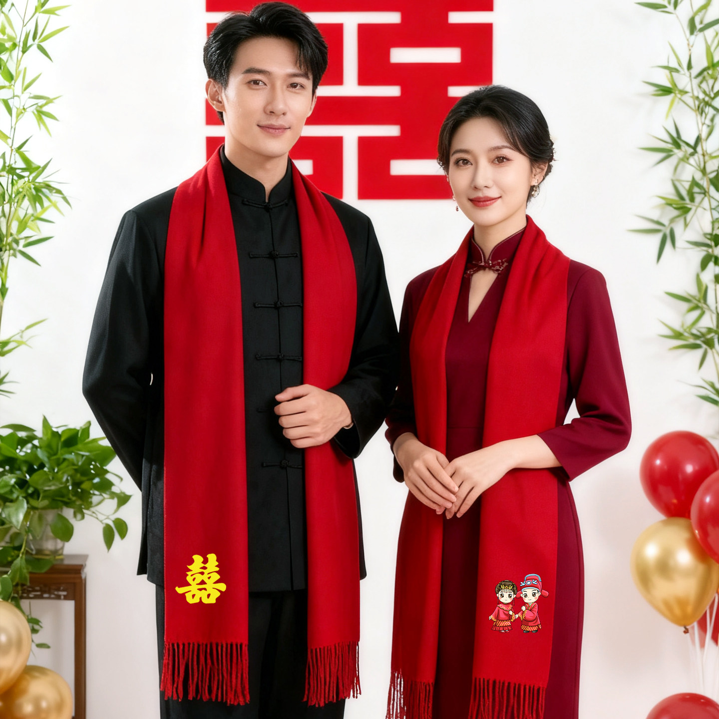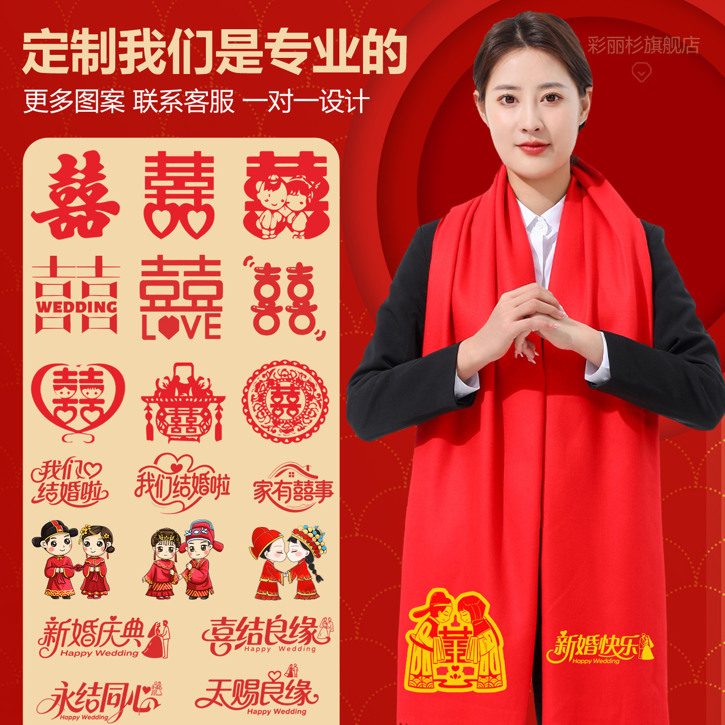 📚 结婚用的大红色围巾定制喜字婚宴伴手礼实用答谢回礼围脖印字图案