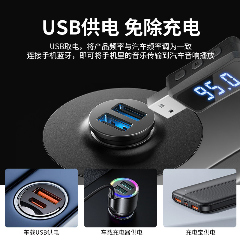 📚 车载蓝牙接收器5.3迷你USB适配器FM输出汽车立体声免提通话导航用