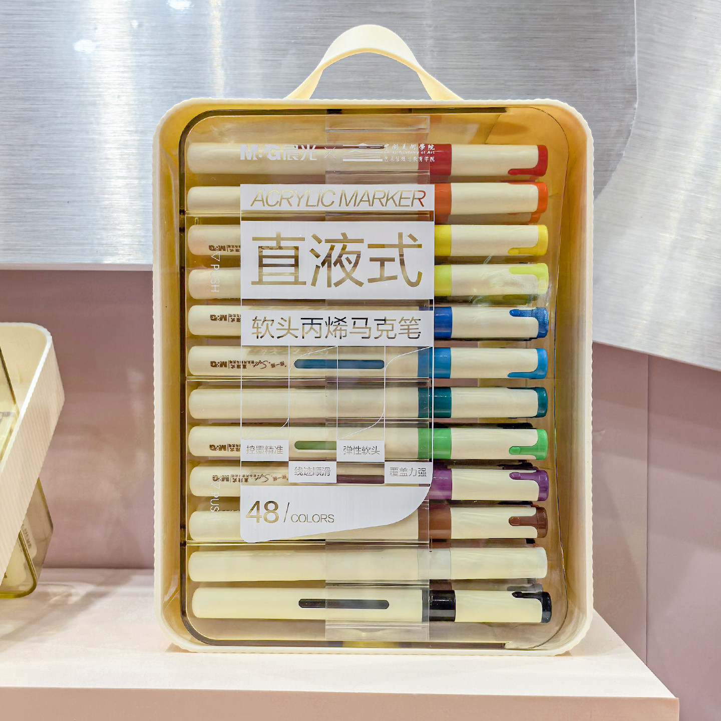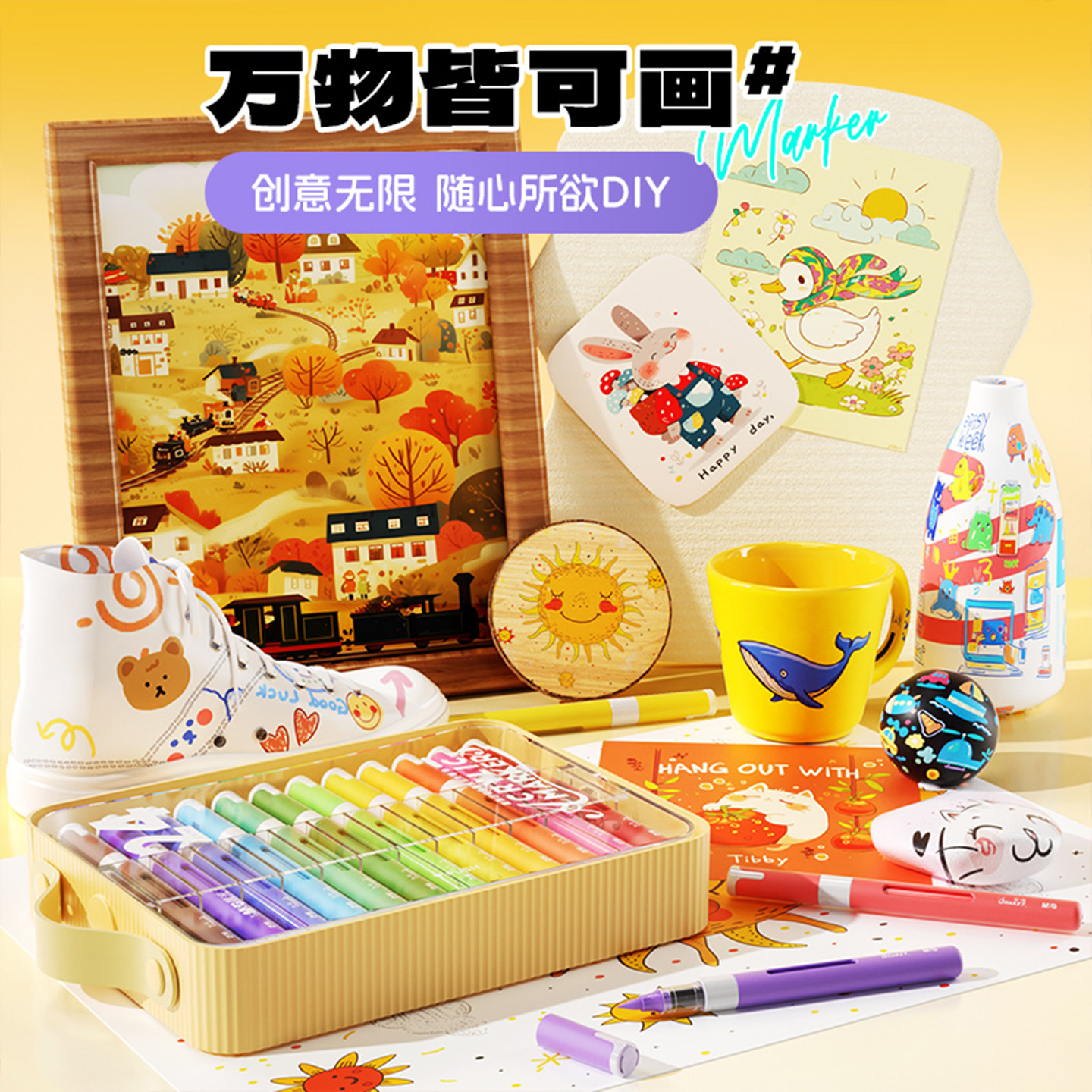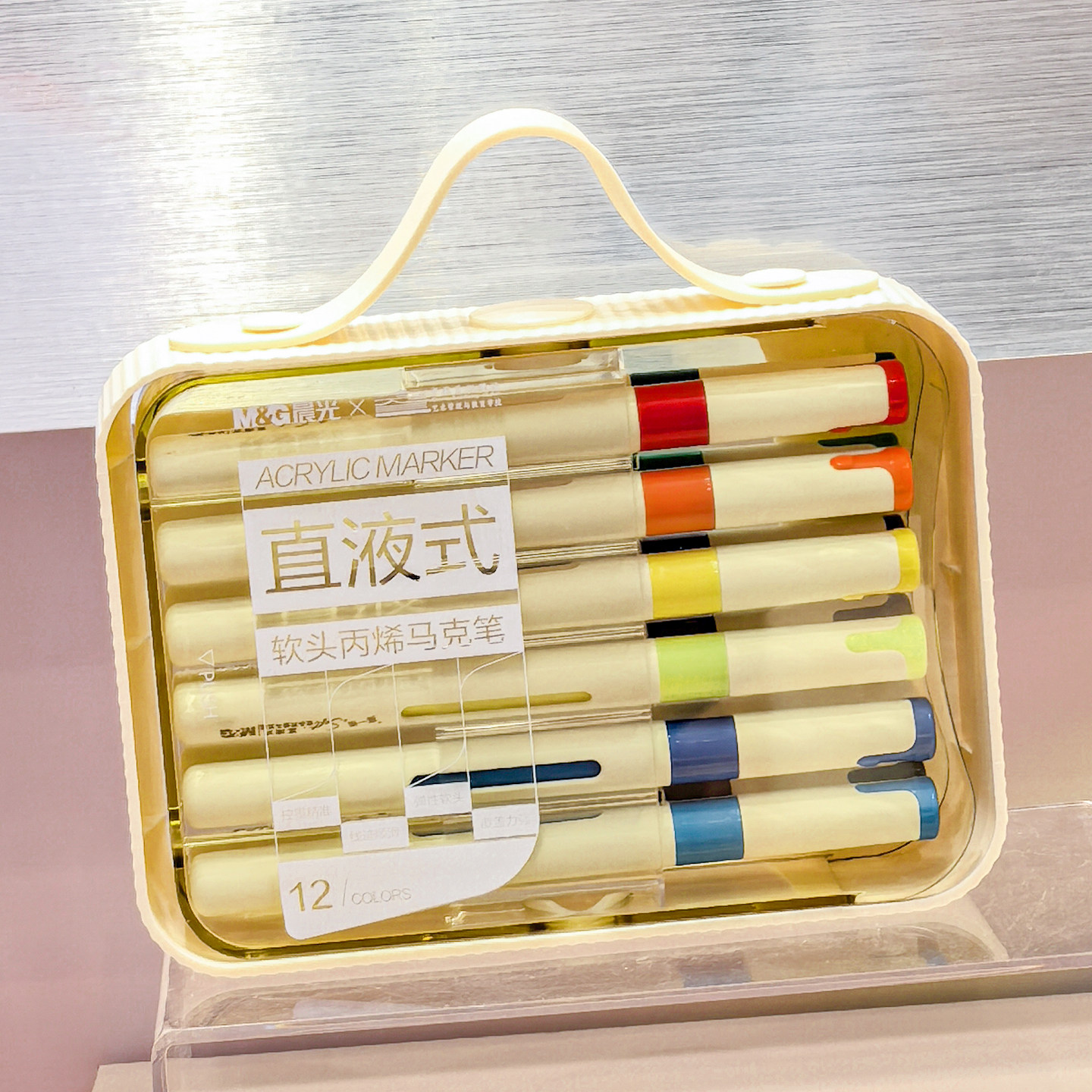📚 晨光 丙烯马克笔直液式软头单头弹性头X翻转盒装软胶手提小学生美术用绘画画笔彩色儿童APMF1114/5/6/7文具