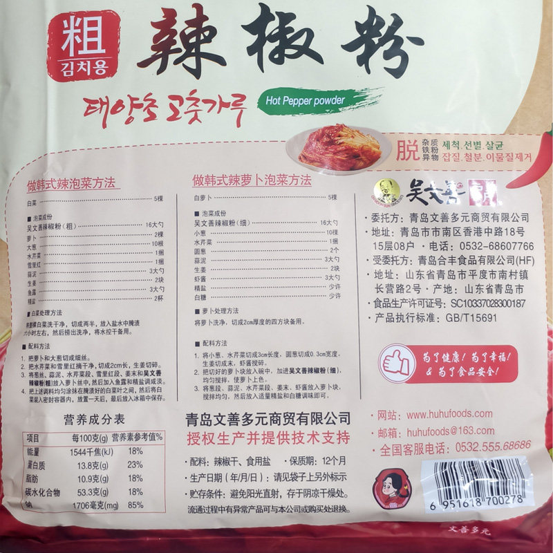 📚 户户辣椒面吴文善辣椒粉粗粒腌制韩国辣萝卜泡菜辣白菜专用1kg