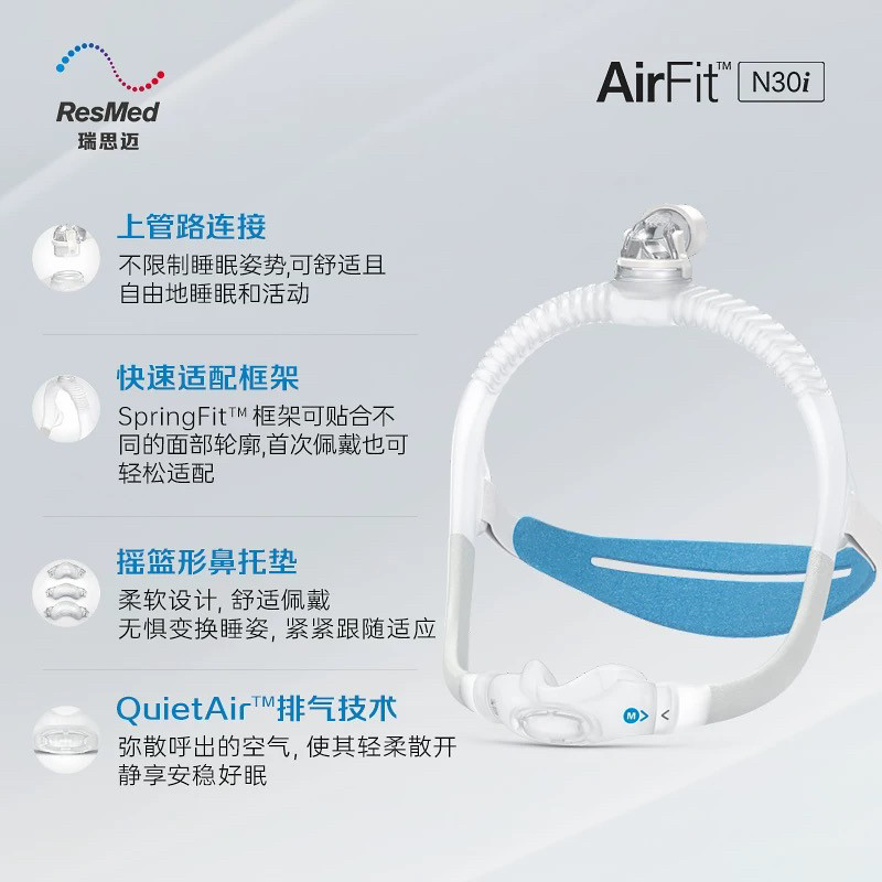📚 瑞思迈进口家用舒适AirFit N30i鼻罩面罩呼吸机原装配件带头带