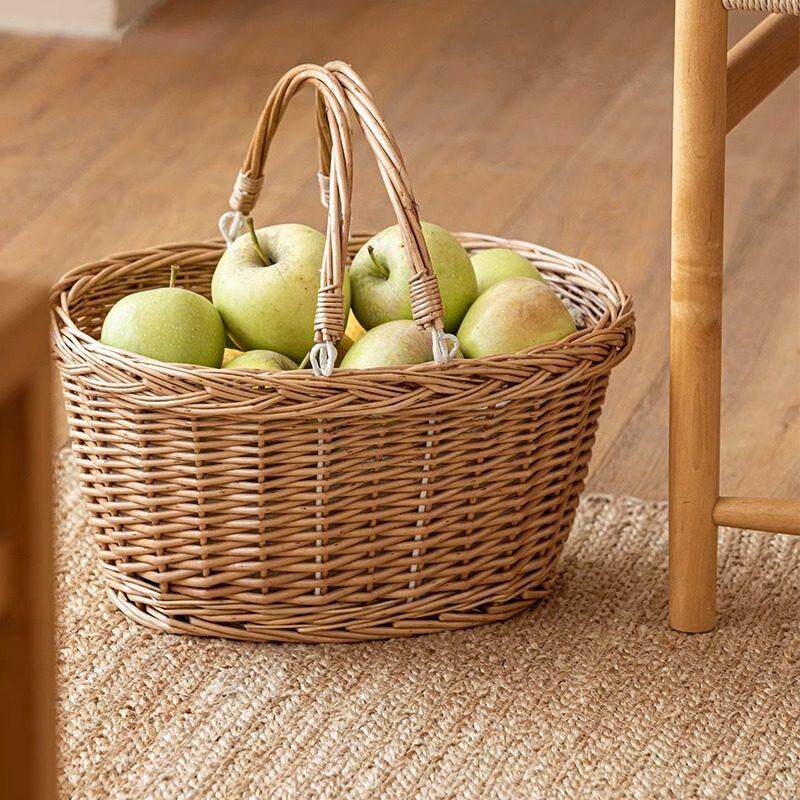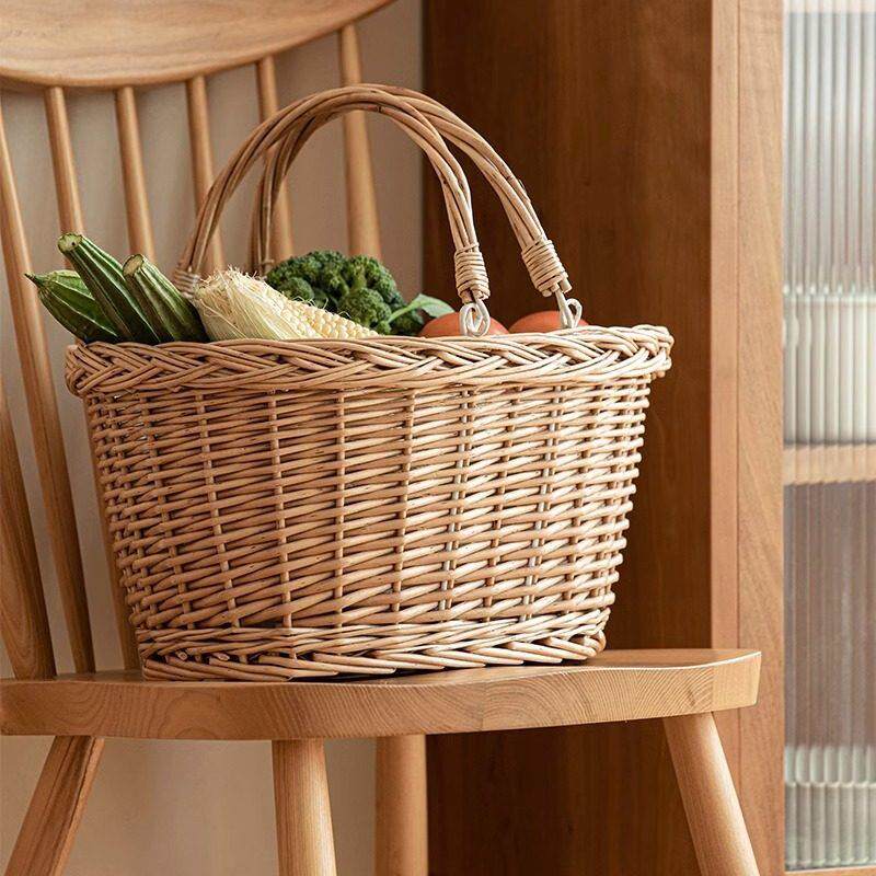 📚 沭沐家居柳编手提篮手工柳条编织收纳筐水果采摘篮竹编购物菜篮子