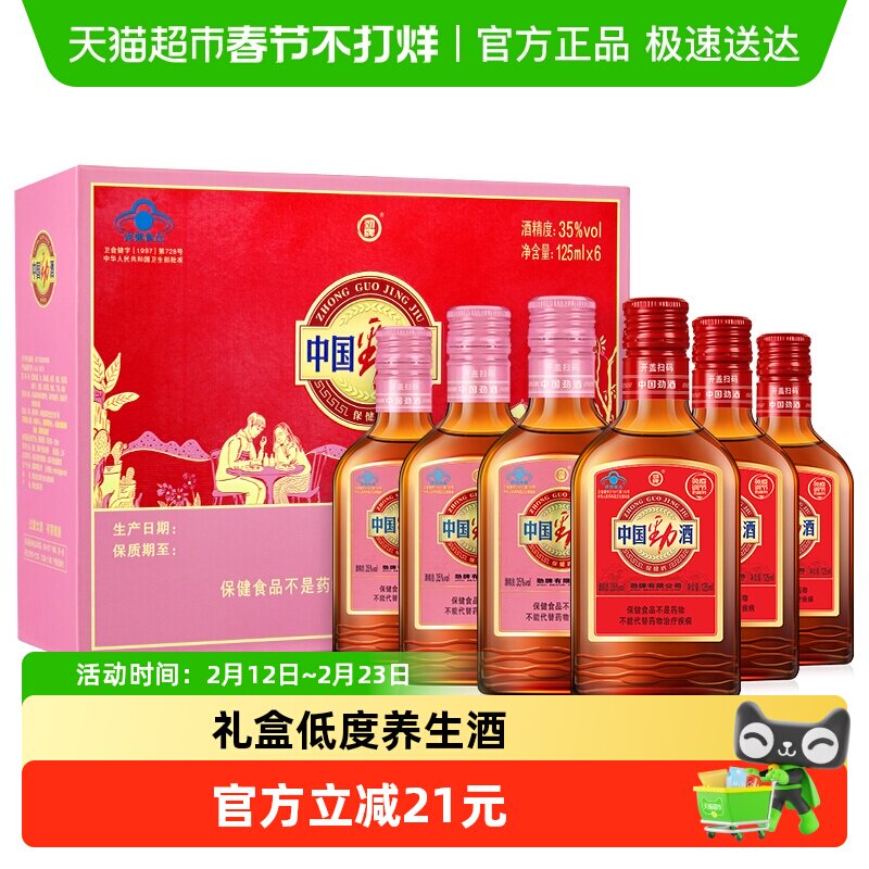📚 劲牌中国劲酒35度125ml*6瓶礼盒红粉组合装低度养生酒