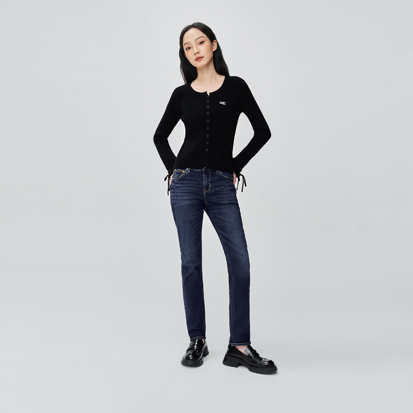 📚 【张凌赫代言】Lee商场款25冬新美颜牛仔405修身窄脚莱卡女牛仔裤