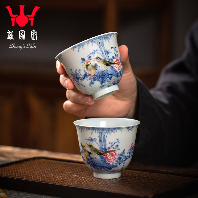 📚 钟家窑茶杯单杯高级工艺美术师万海华青花斗彩柴窑花鸟主人杯收藏