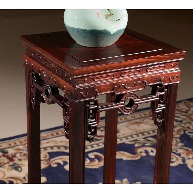 📚 红木花架印尼黑酸枝阔叶黄檀花几电视柜旁双层玄关中式免安装置物