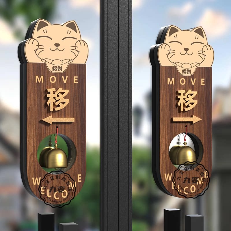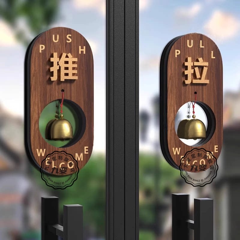 📚 推拉门贴门拉贴亚克力创意玻璃门上拉字标识牌开门提醒铃铛酒店宾馆店铺左右移门门牌欢迎光临温馨标志牌定制
