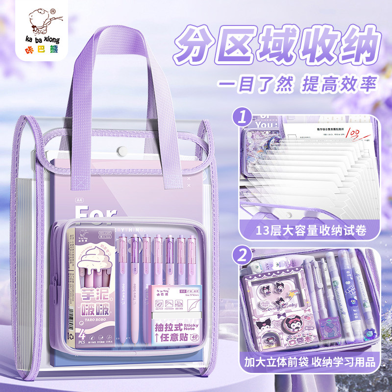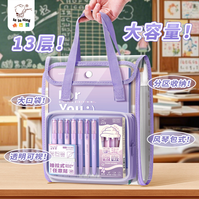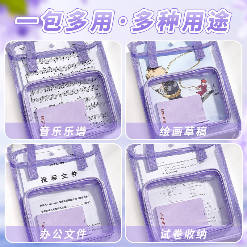 📚 a4手提风琴包补习袋多层收纳文件夹ins大容量学生卷子高颜值办公补课书包透明文具收纳袋不撞款