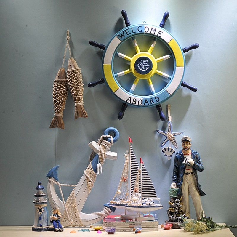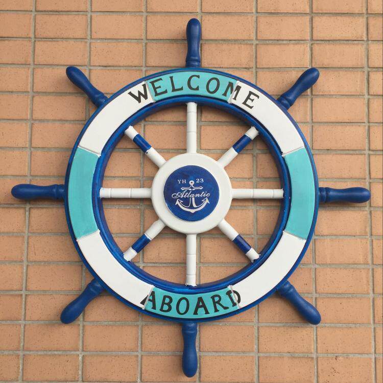 📚 地中海风格复古实木船舵装饰摆件陈列道具家居客厅餐厅酒吧摆设