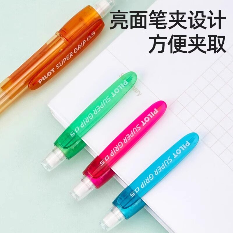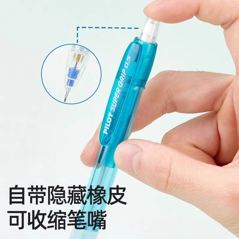 📚 日本百乐H-185N彩色笔杆自动铅笔透明笔杆小学生绘画书写用带橡皮擦可伸缩笔嘴铅笔儿童学生可爱少女心0.5mm