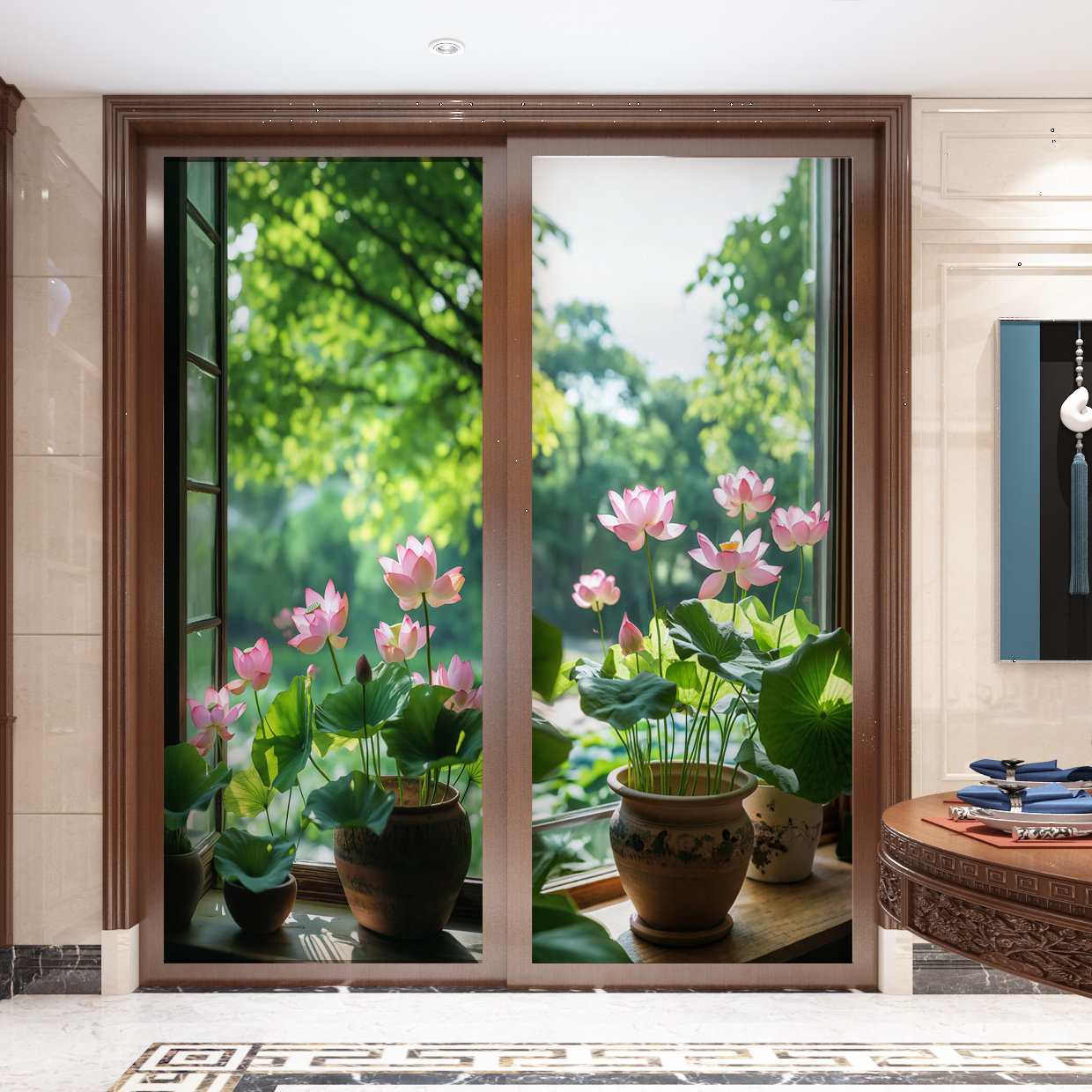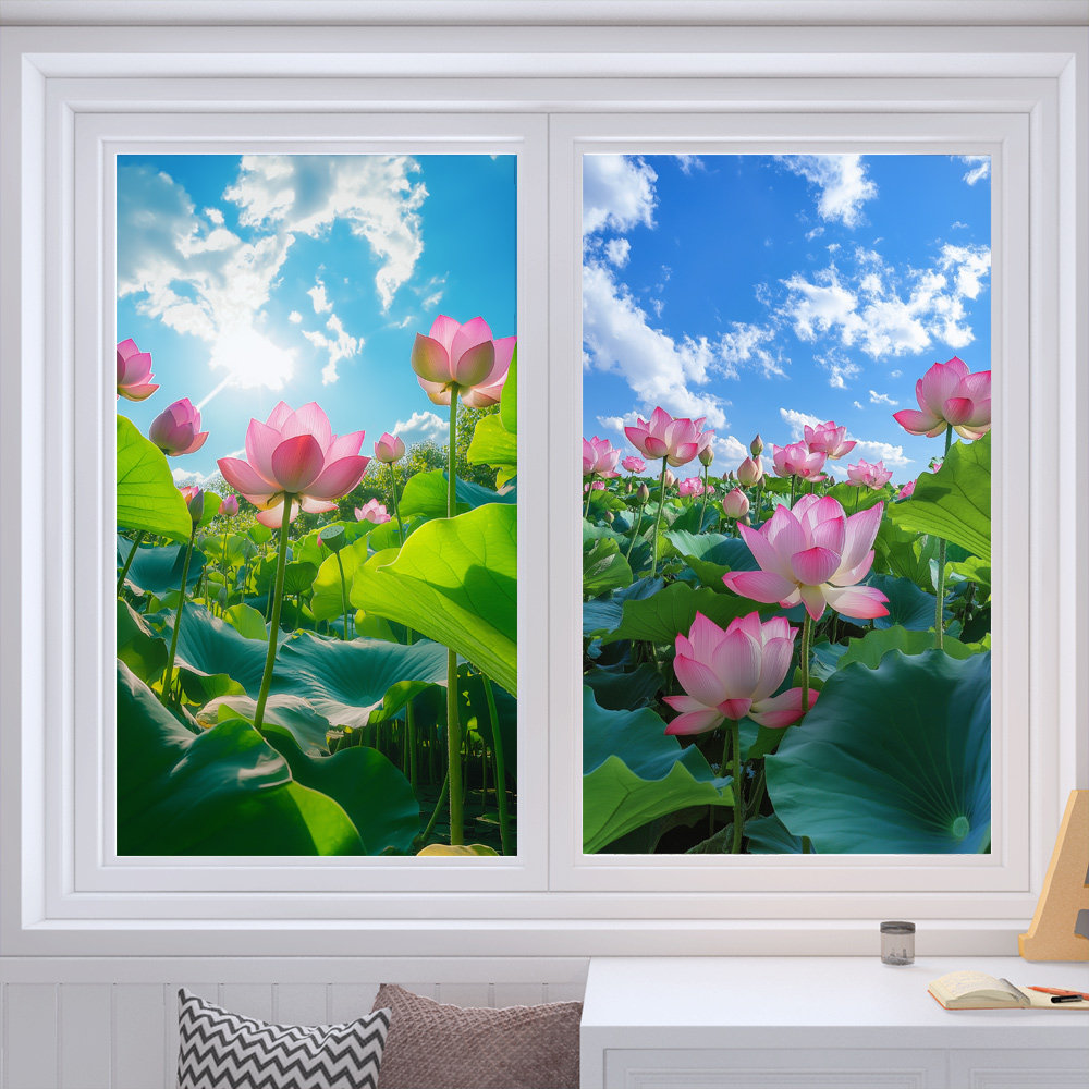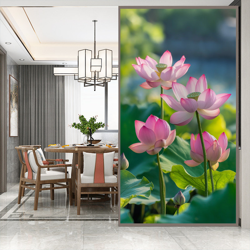 📚 荷花玻璃膜透光不透明防偷窥客厅餐厅推拉门窗贴画防走光卧室贴纸