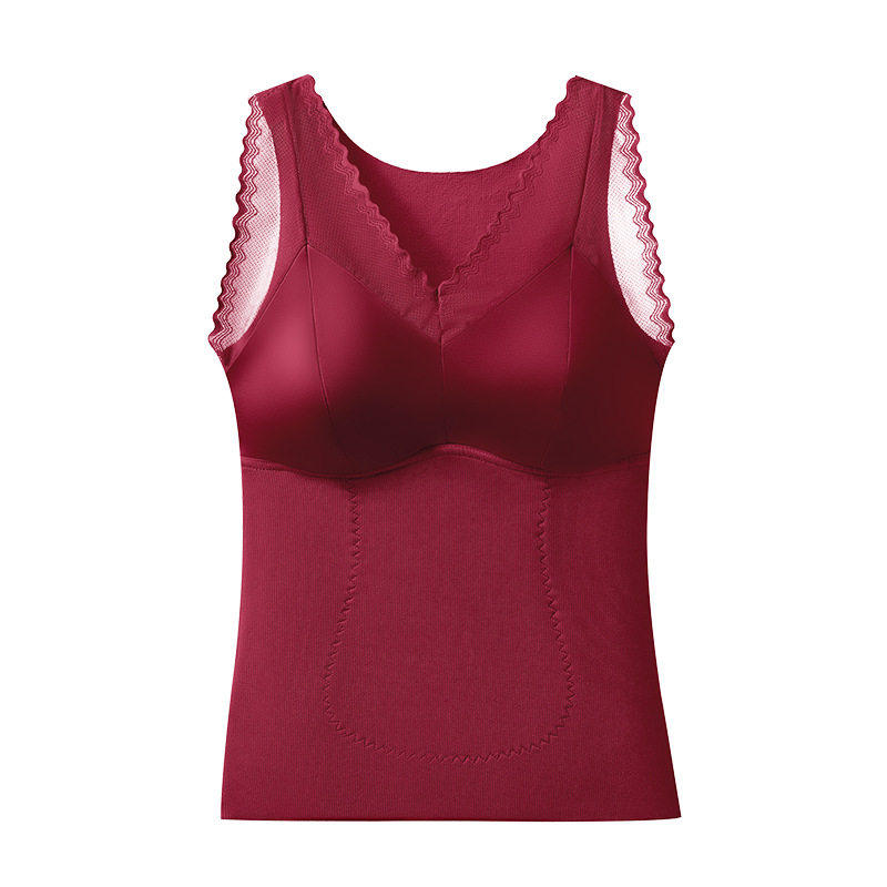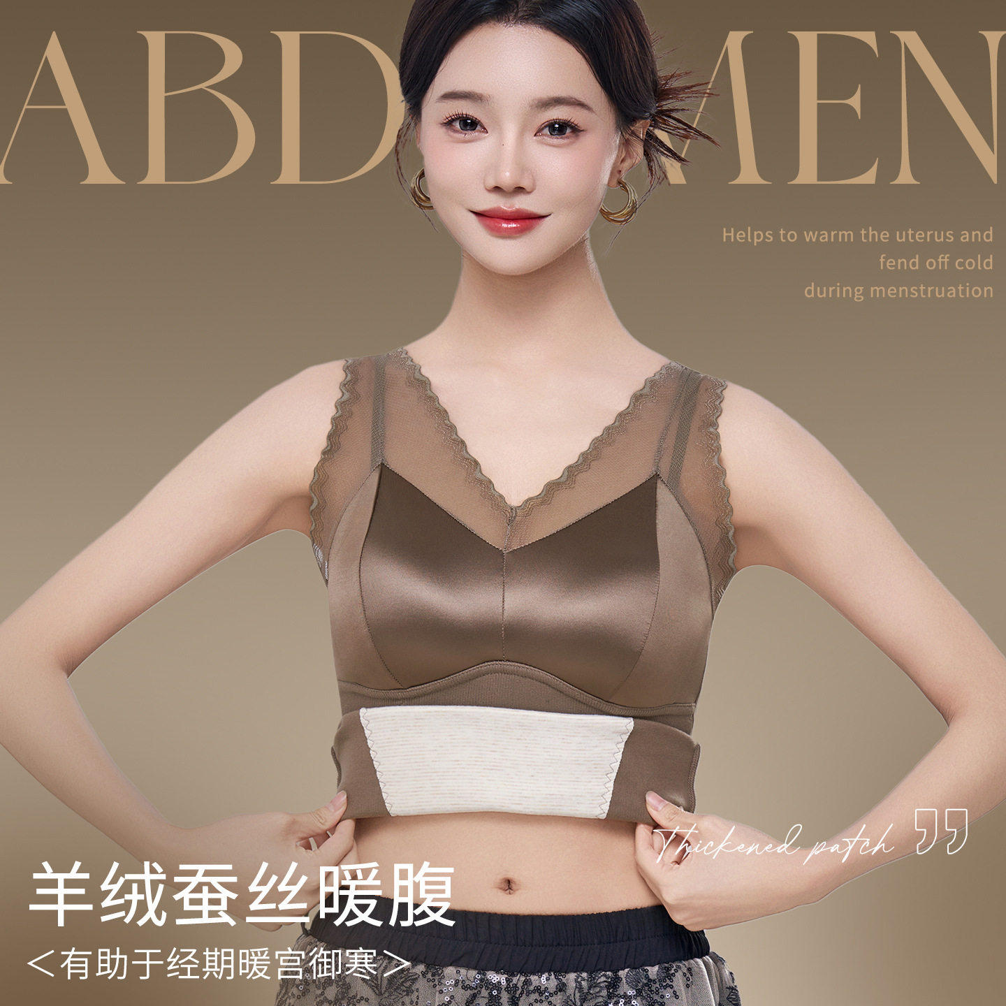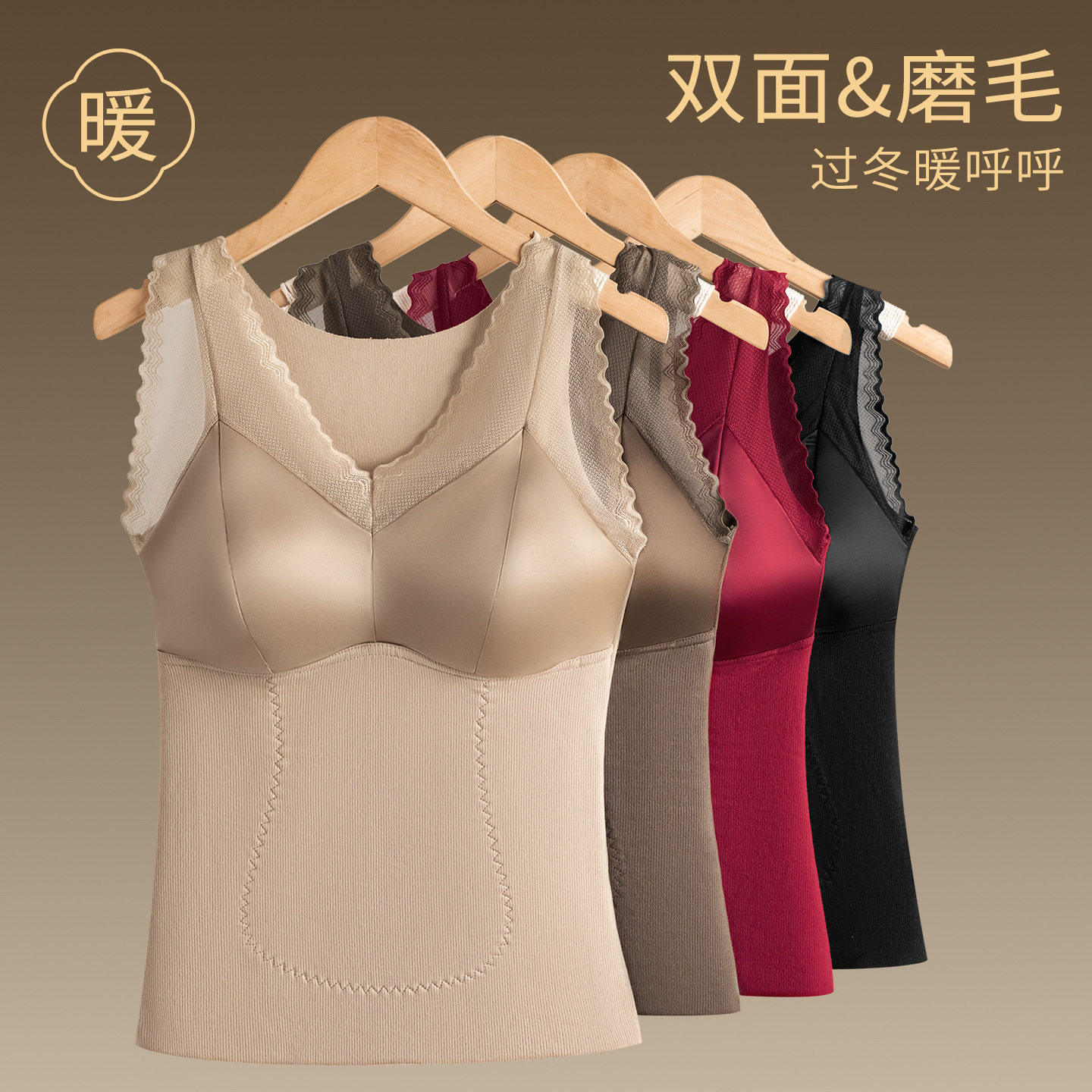 📚 思顶真服饰性感镂空网纱缎面羽绒保暖内衣女免穿文胸固定打底背心