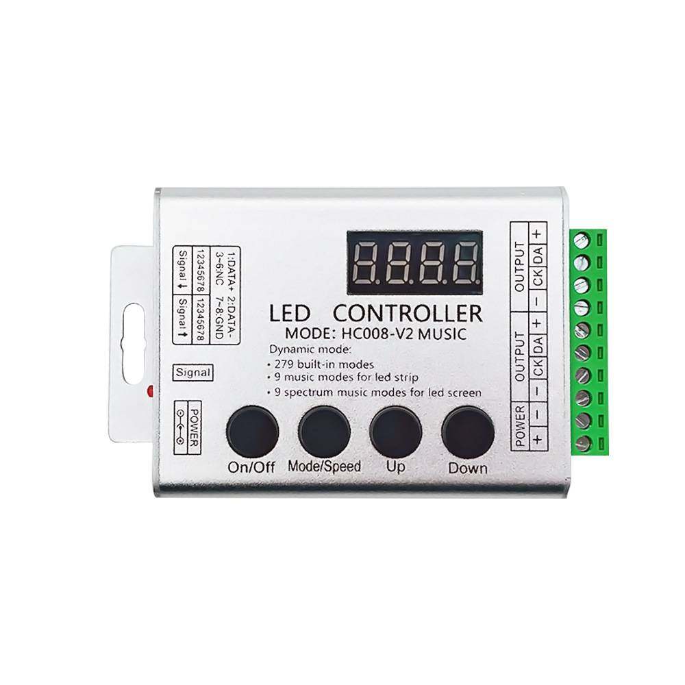 📚 LED幻彩控制器 铝壳HC008-V2幻彩音乐控制器WS2811/2812全彩追光