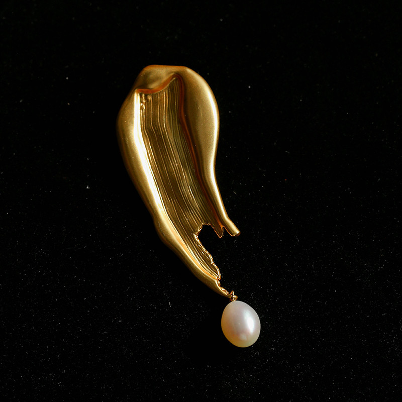📚 TU家 艺术感油画笔触天然珍珠胸针小众设计简约高档大衣西装别针