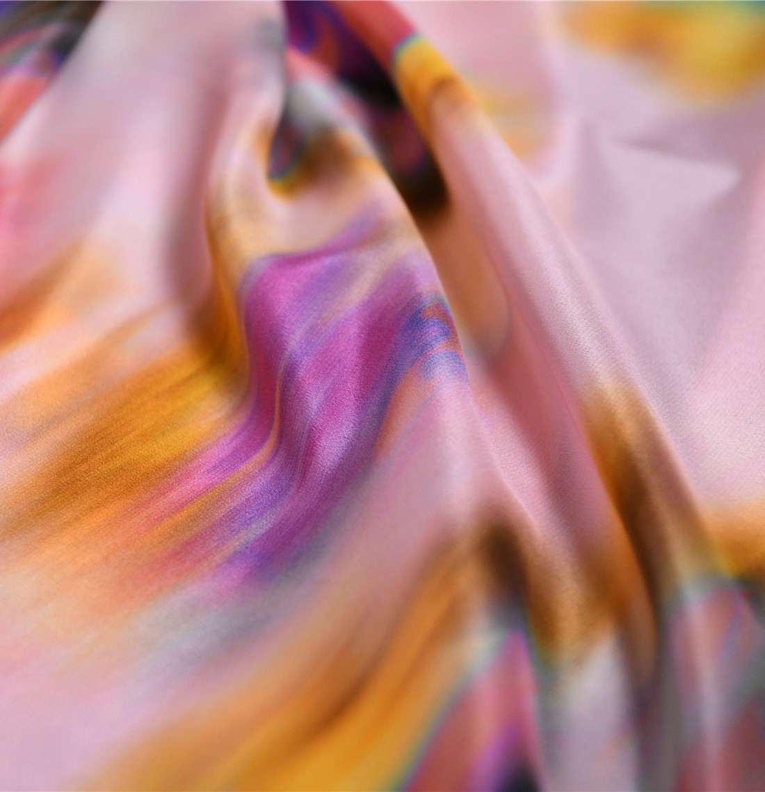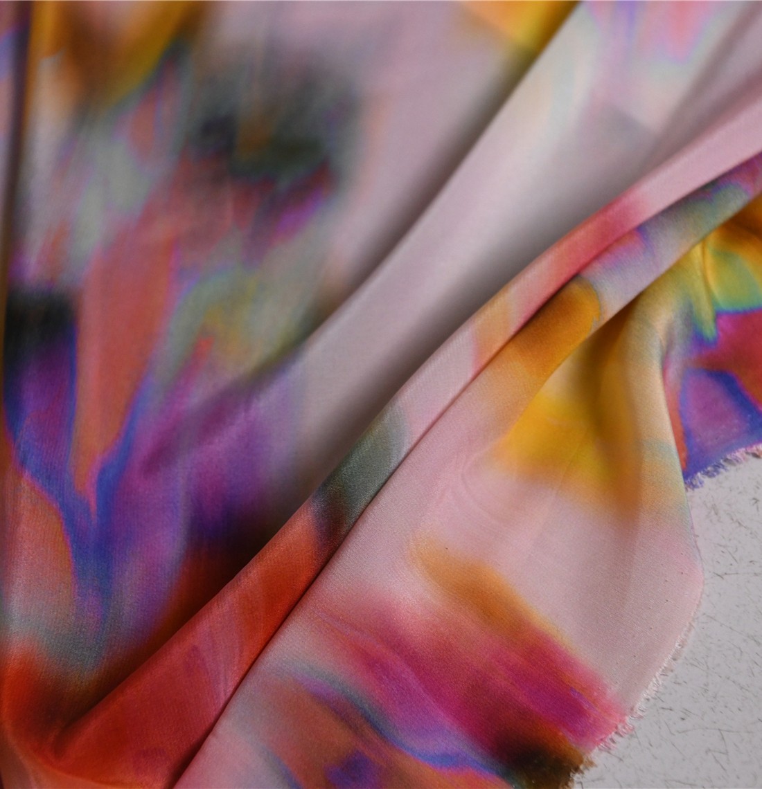 📚 晕染朝霞 大牌订单水彩画真丝双绉14姆100丝138宽 设计师布料
