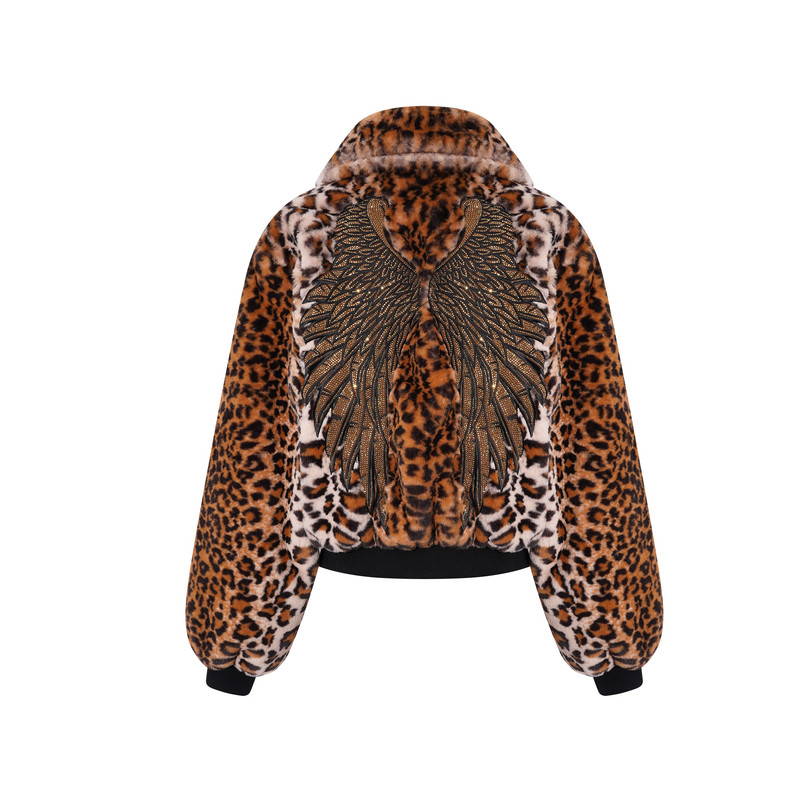 📚 TCH美式复古烫钻豹纹翻领保暖毛毛外套女2025冬季新款T75D27E1055