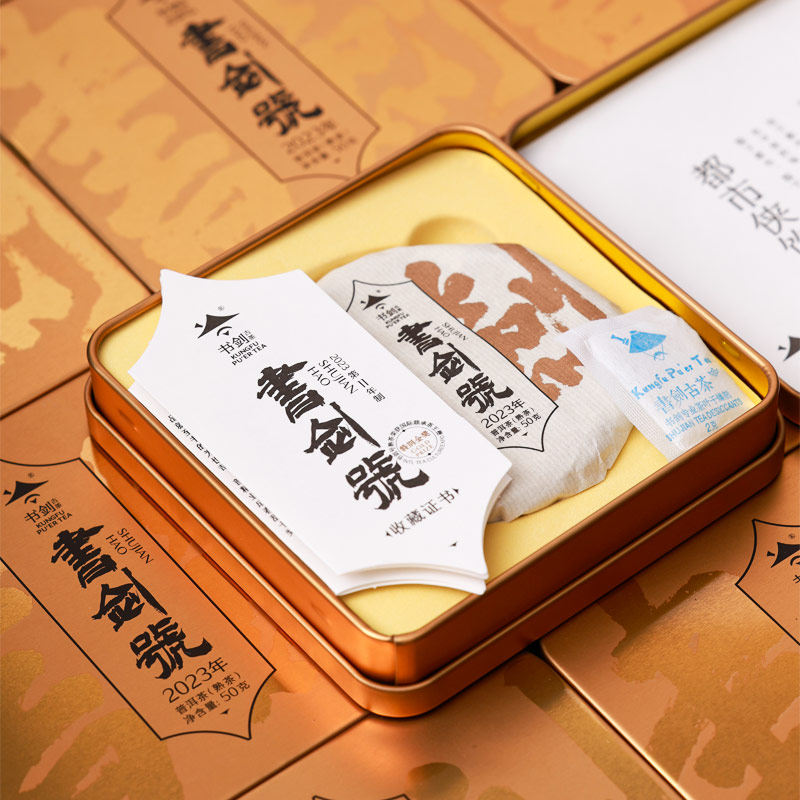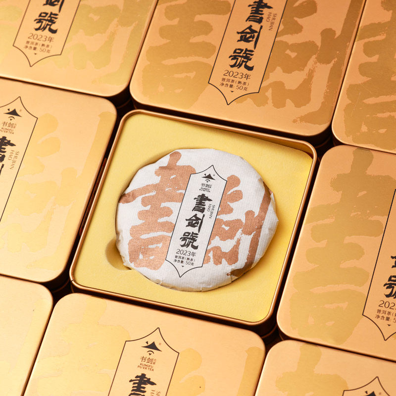 📚 2023年书剑号50克普洱熟茶饼云南古树原料柔甜细滑 拍2片到手6片