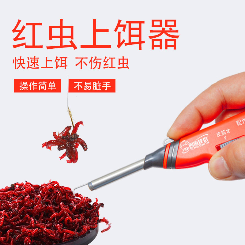 📚 四海伴侣红虫上饵器新款红虫枪皮筋活饵夹上钩器挂饵全自动不锈钢