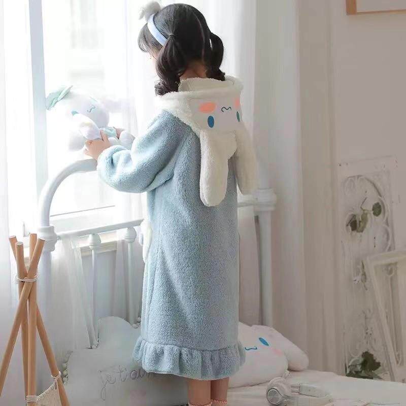 📚 儿童睡袍玉桂狗加绒加厚睡衣女童春秋珊瑚绒可外穿家居服套装浴袍
