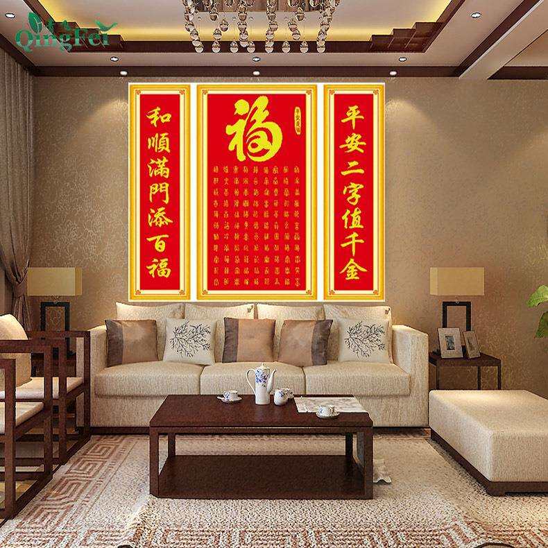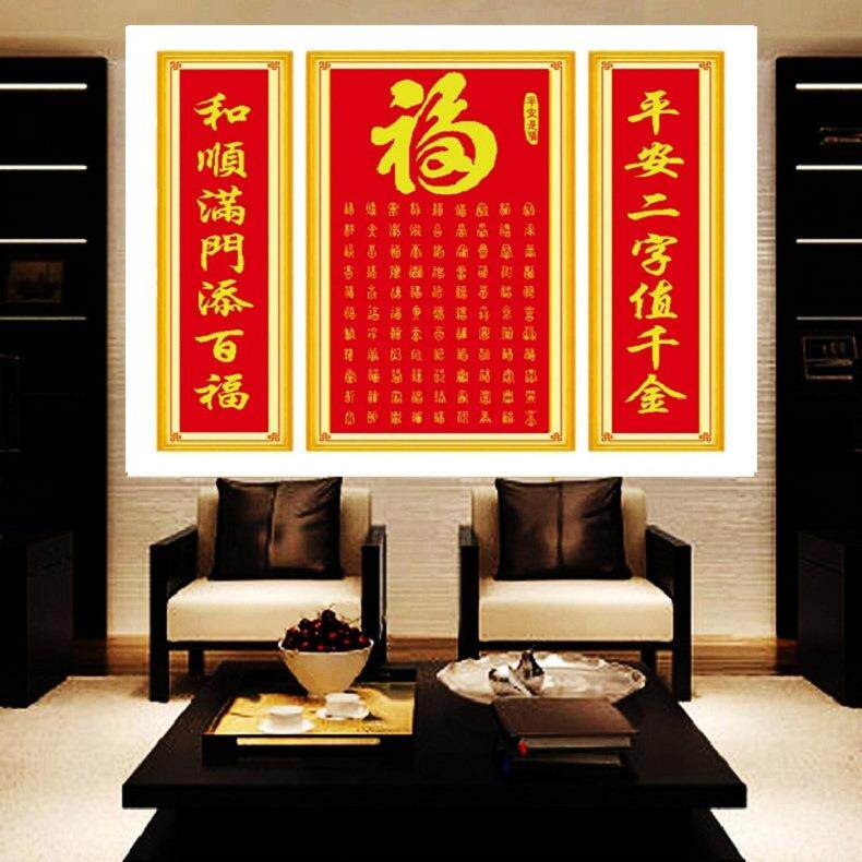 📚 青飞精准百福中堂画十字绣平安是福福星高照十字绣福中堂对联珠绣