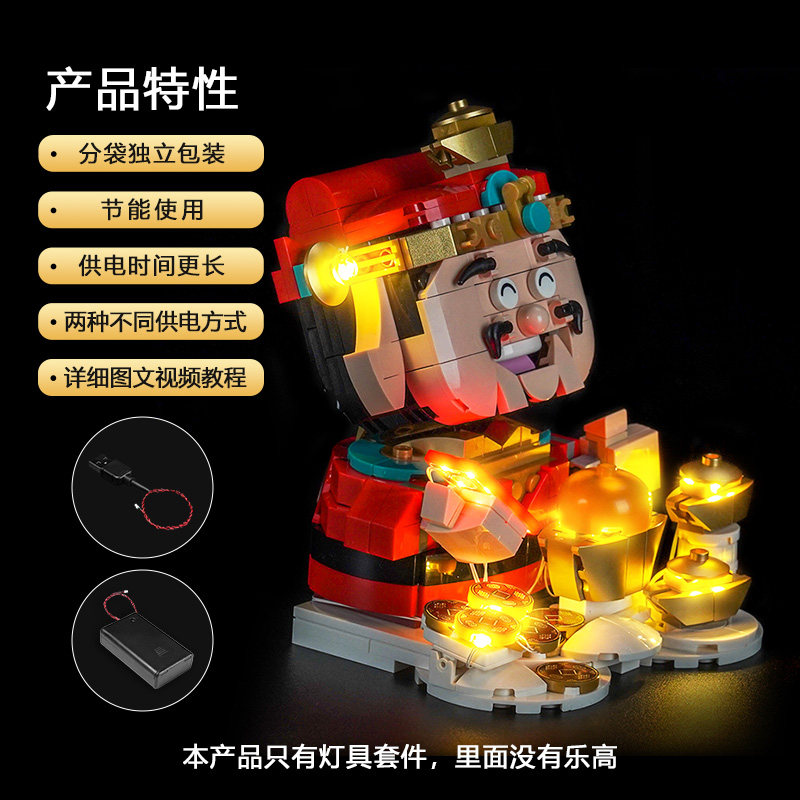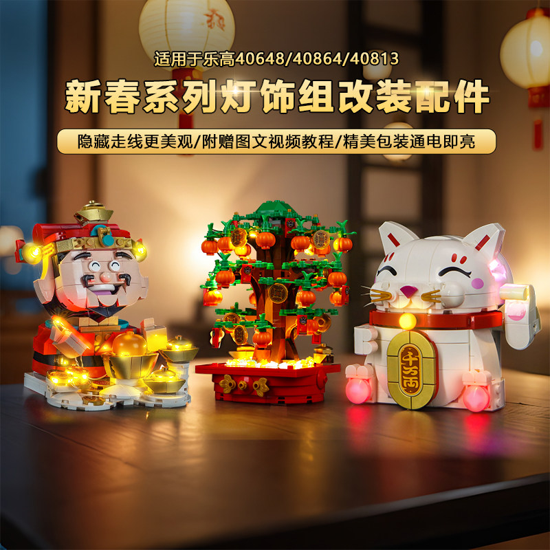 📚 BrickBling适用乐高新春40864财神爷积木灯饰摇钱树配件LED亮灯光