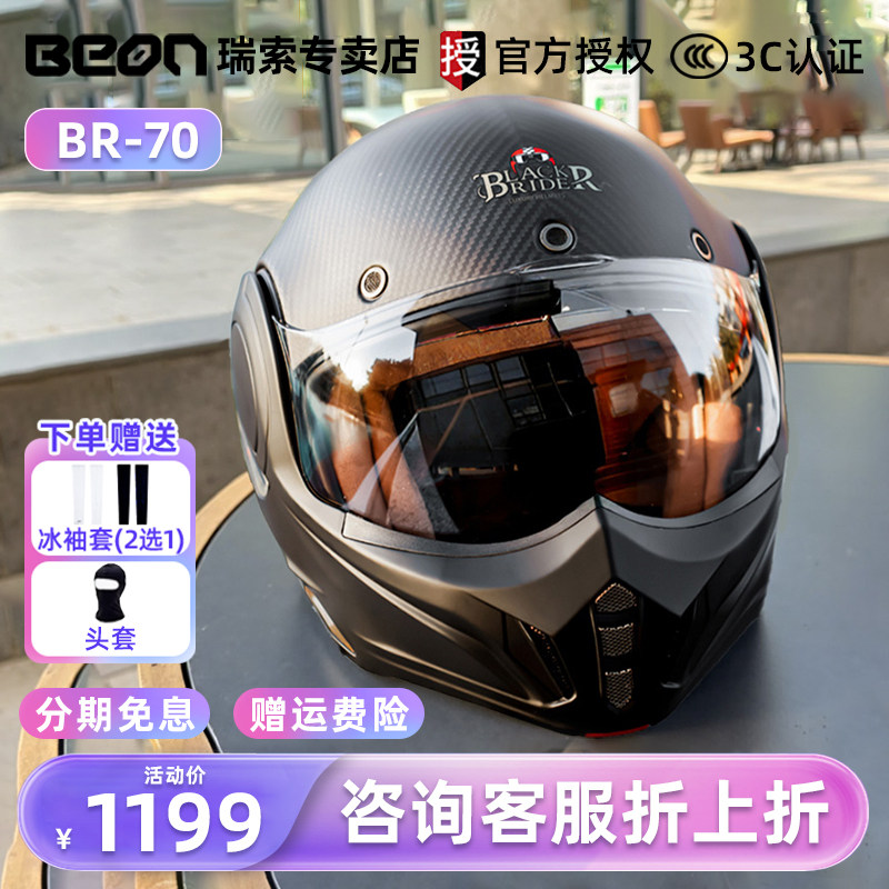 📚 BEON摩托车骑行头盔后空翻揭面盔机车赛车碳纤维双镜片四季男BR70