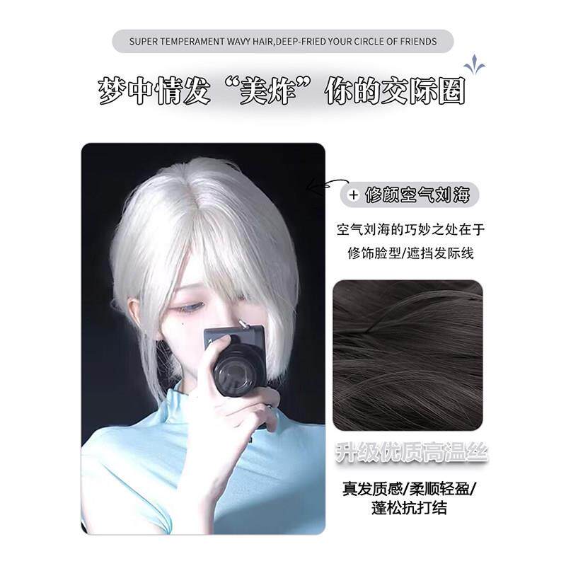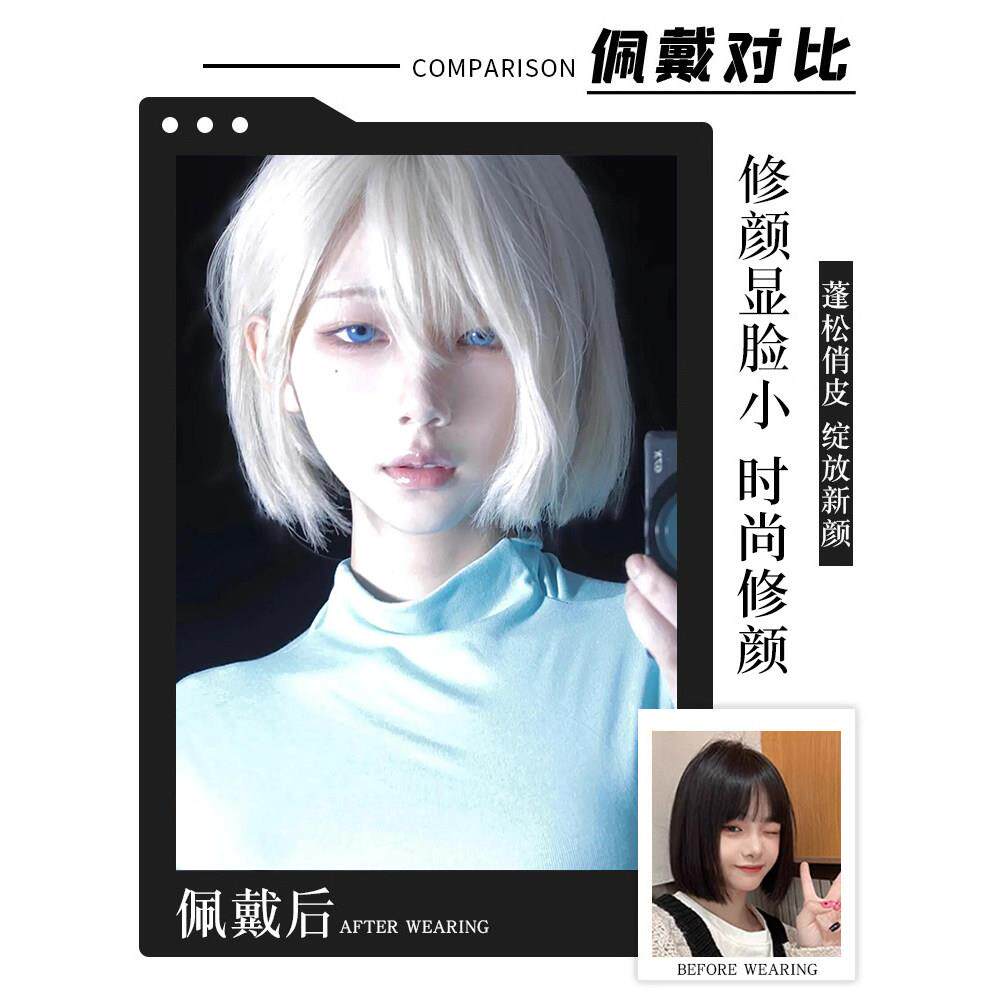 📚 白色假发女短发全头套自然可爱减龄空气浏海波波头万用整顶假发套