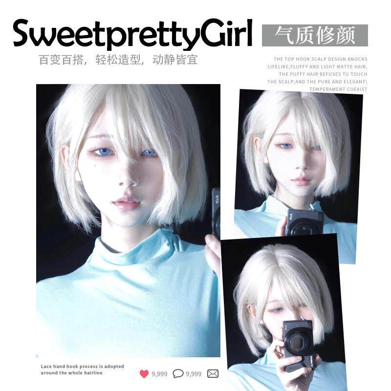 69¥ CZ321 41ljUtq6wbW¥ https://m.tb.cn/h.iX3wbBd 白色假发女短发全头套自然可爱减龄空气浏海波波头万用整顶假发套 --------------------- 【原售价】84元 【现售价】84元。