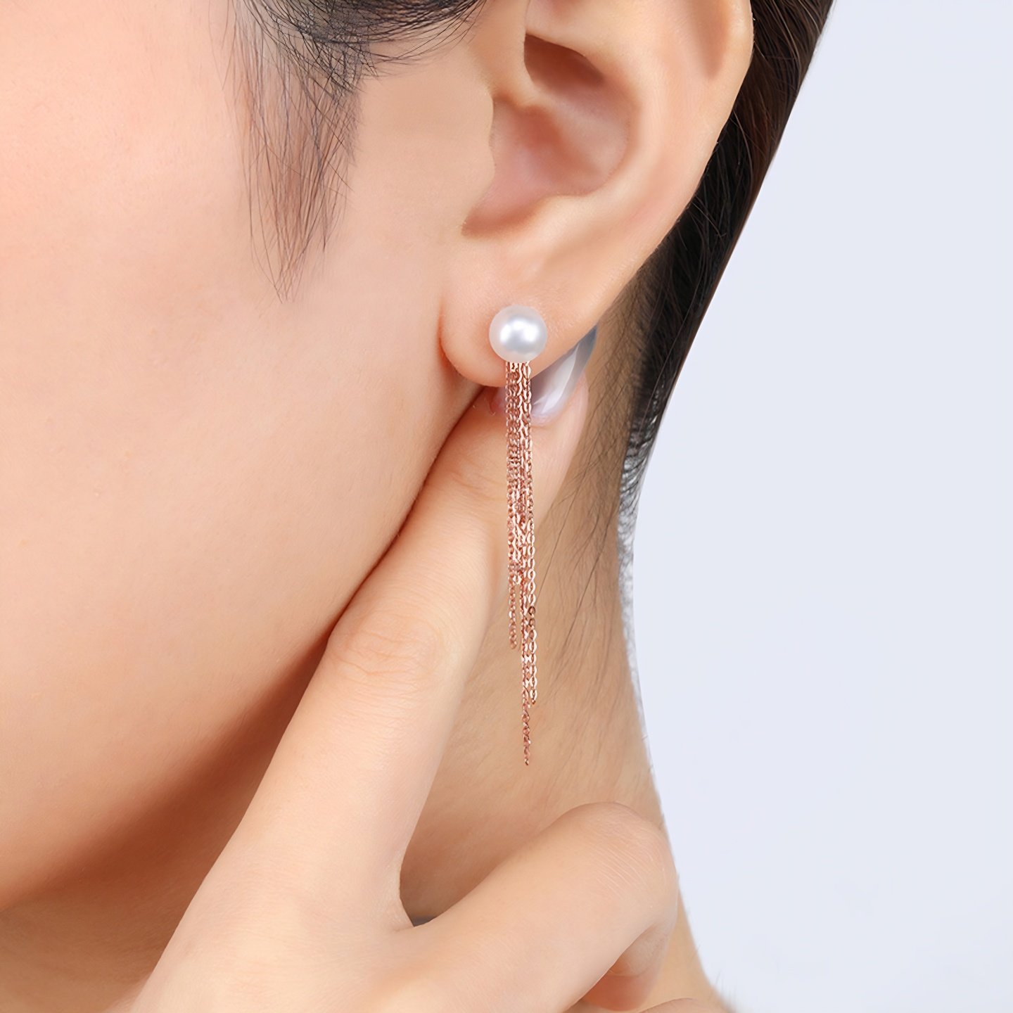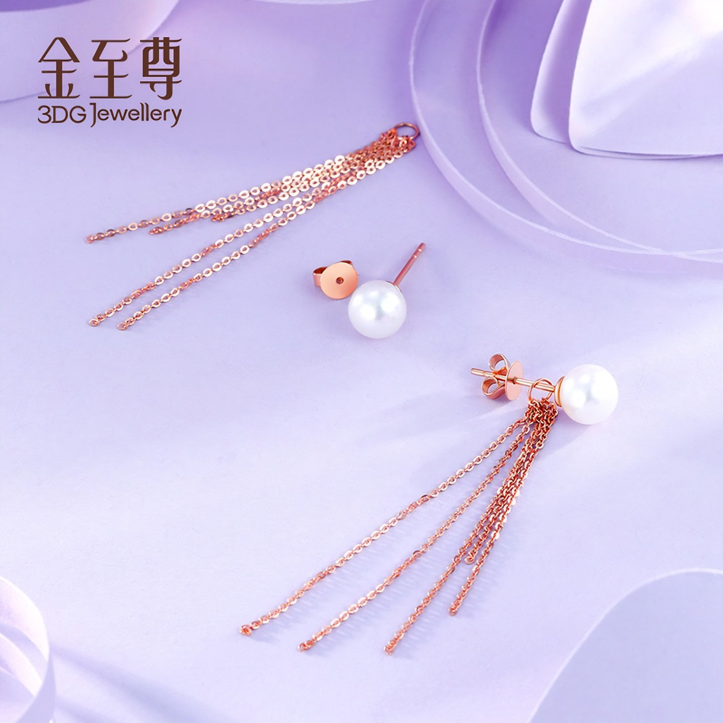 📚 金至尊流苏彩金耳饰18k金耳钉珍珠耳钉配K金耳迫送女友生日礼物