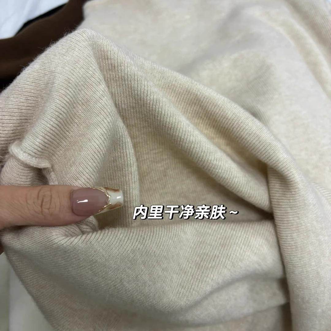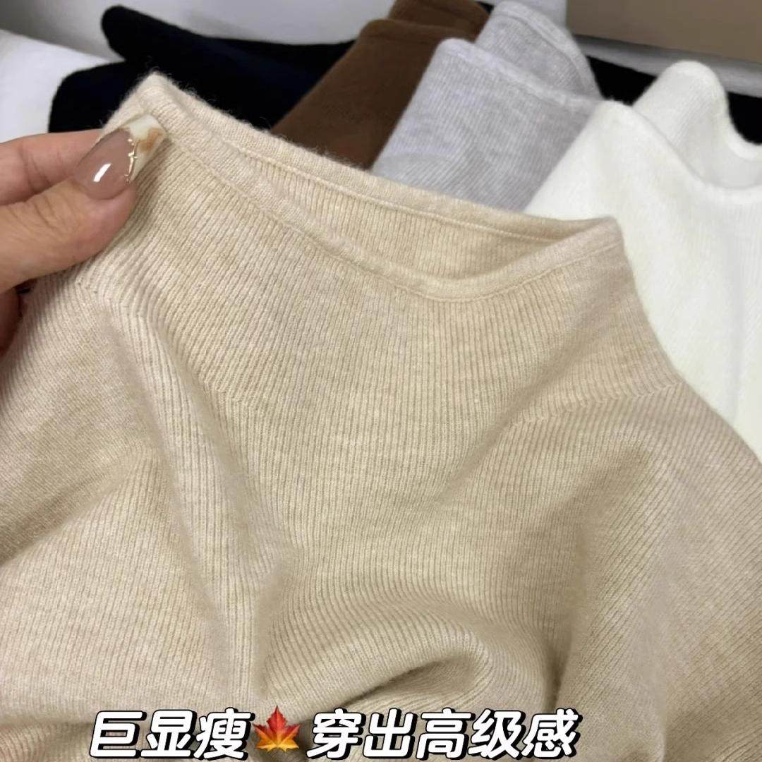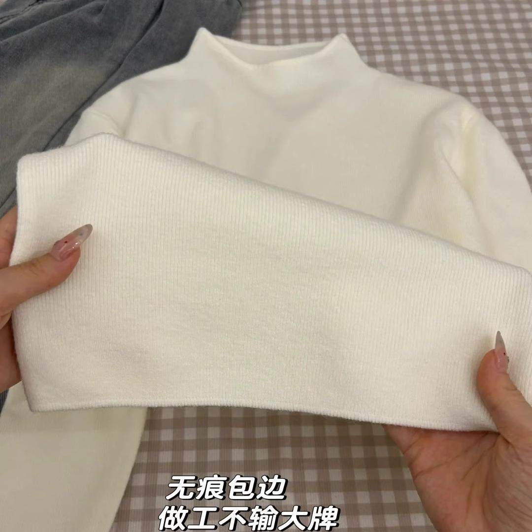 📚 广州十三行爆款!软糯长袖上衣小立领高级感大码打底衫女胖mm毛衣