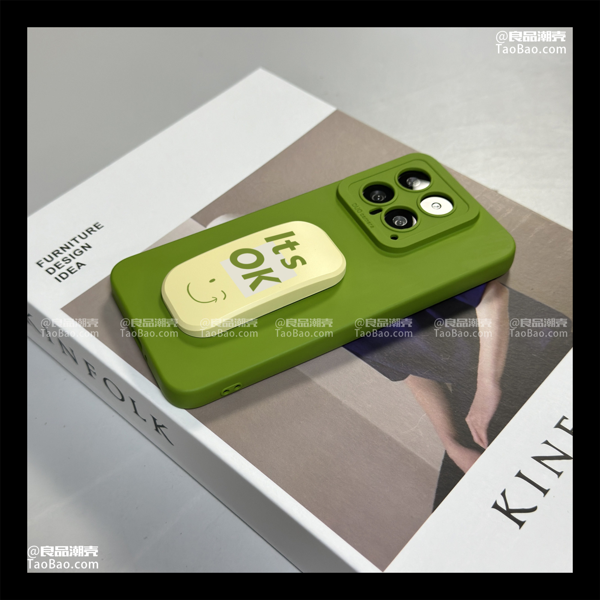 📚 小众高级感卡通芥末绿色适用一加13/ACE3手机壳2PRO推拉支架OnePlus 10PRO创意1+9RT硅胶8T软壳11全包12情侣